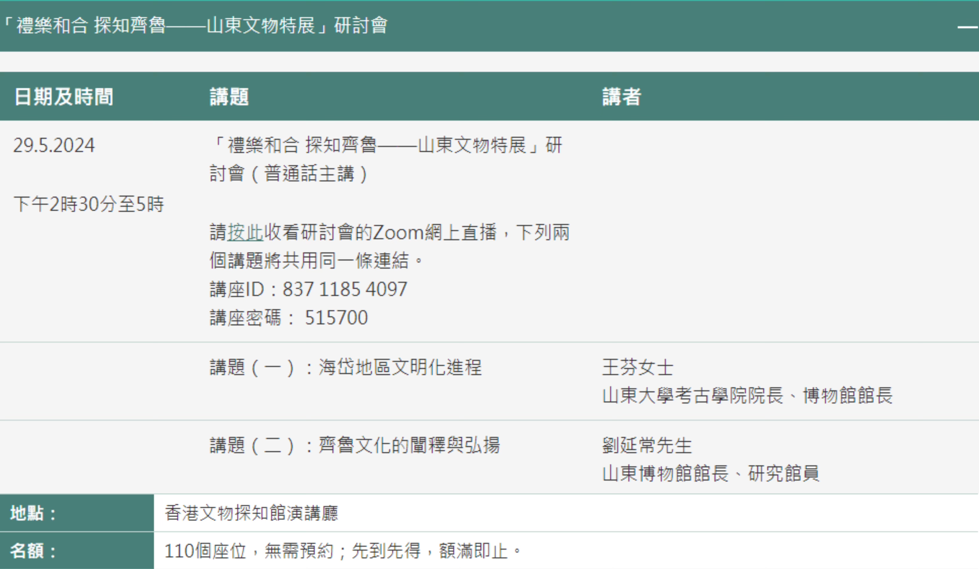 大公文匯全媒體報道,古物古蹟辦事處將由明日(29日)起舉辦「禮樂和合探知齊魯——山東文物特展」,展出60件精選山東文物,包括玉石器、陶器、銅器,以及原始樂器等,全部首次在香港展出。同場亦展出香港的重要出土文物,包括彩陶盤、白陶盤、石鉞、牙璋、石串飾等,以作齊魯文化與嶺南文化對比,揭示中華文化多元一體的特徵。展覽將由明日起至10月6日,於尖沙咀香港文物探知館展出,免費入場。