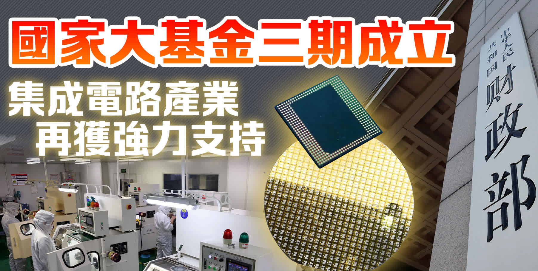 (大公文匯全媒體記者 章芸菲)近日,國家企業信用信息公示系統顯示,國家集成電路產業投資基金三期股份有限公司(大基金三期)已於本月24日正式成立,其註冊資本為3440億元人民幣。
