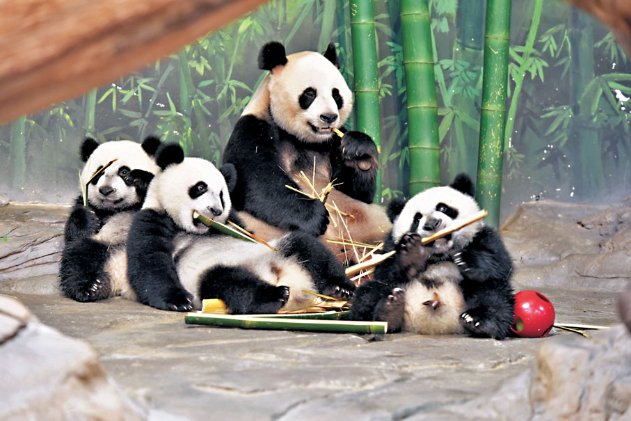 (香港文匯報 記者 丁寧)黑白分明的皮毛、圓滾滾的身材、大大的黑眼圈,熊貓憑藉呆萌可愛的長相早已經成為家喻戶曉的明星,熊貓花花今年還和飼養員譚爺爺一起上春晚了呢。你是否知道大灣區也藏着很多明星熊貓?如廣州長隆野生動物世界的「萌帥酷」三胞胎、東莞香市動物園的珍大和雙兒、深圳野生動物園的園舟和秋浜等,隨香港文匯報記者一起探訪大灣區的大熊貓們吧。