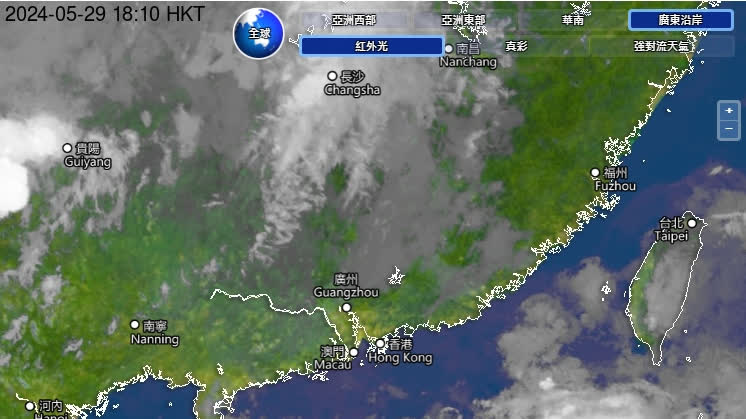 天文台指,偏東氣流會在明日繼續影響廣東沿岸;同時,一道廣闊低壓槽會為南海中部帶來驟雨及雷暴,而廣闊低壓槽上亦可能有低壓區形成。天文台預料,隨着廣闊低壓槽逐漸靠近華南沿岸,本周後期至下周初該區有驟雨及狂風雷暴,而一股偏東氣流會在下周初至中期影響廣東沿岸。