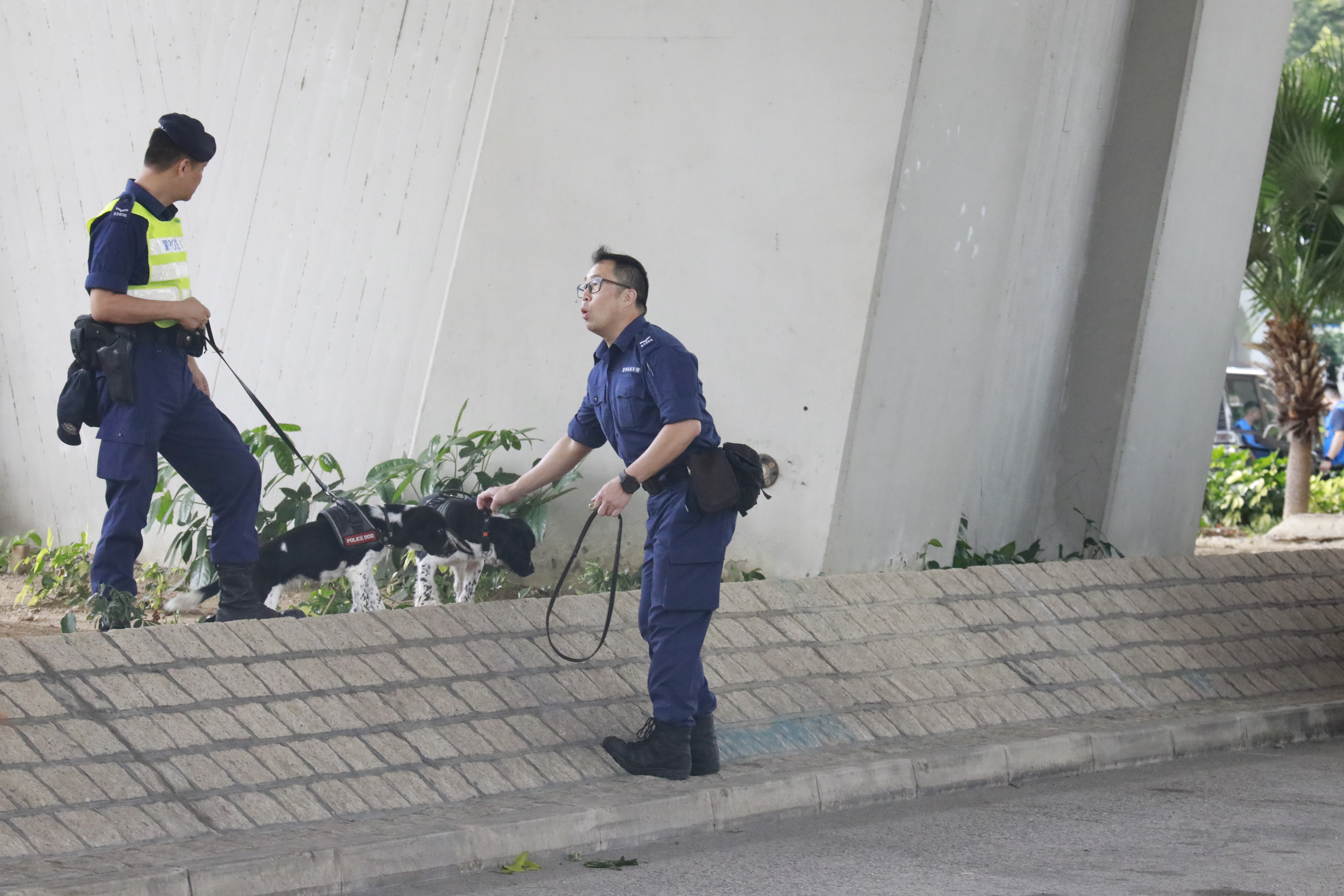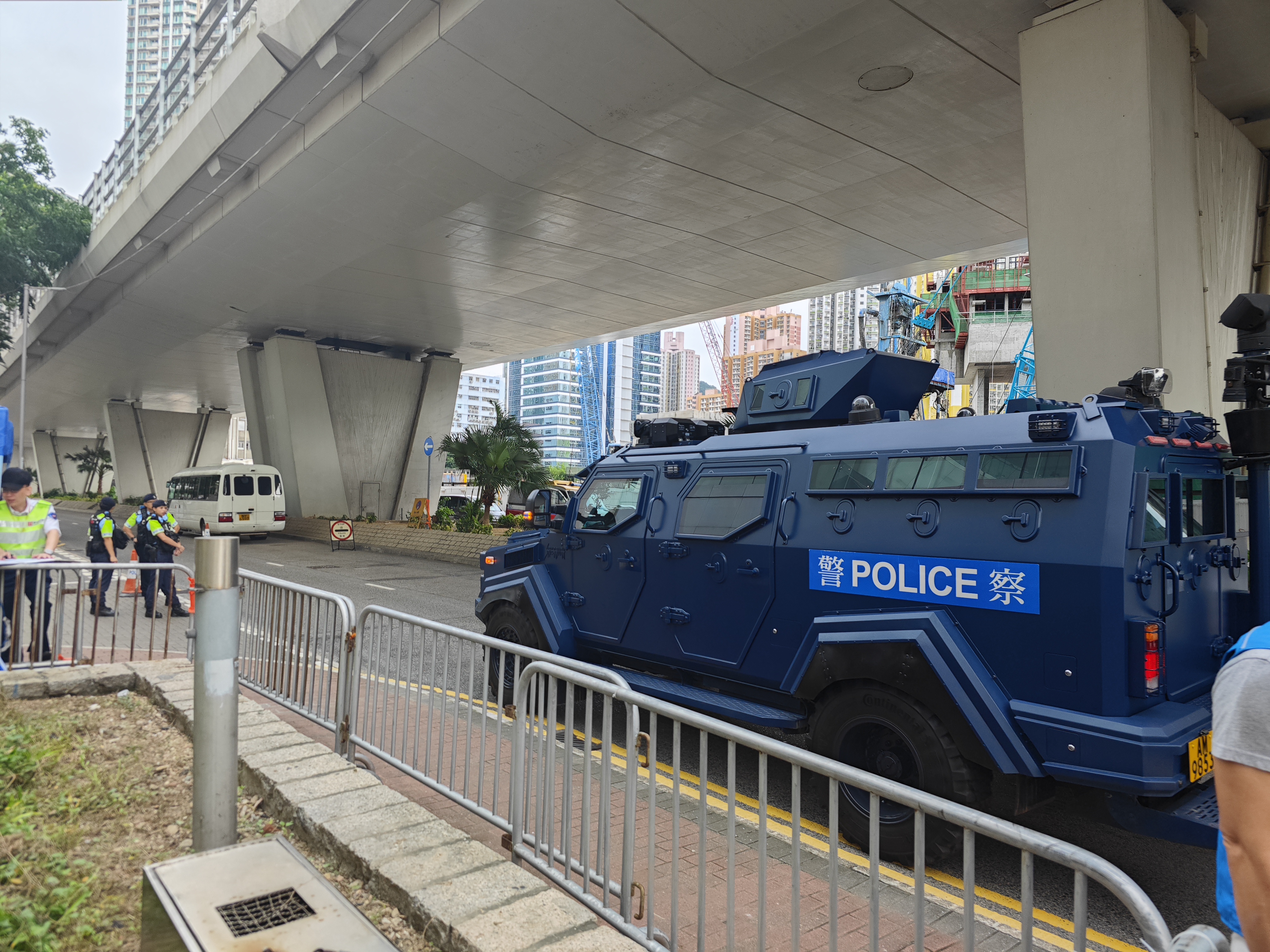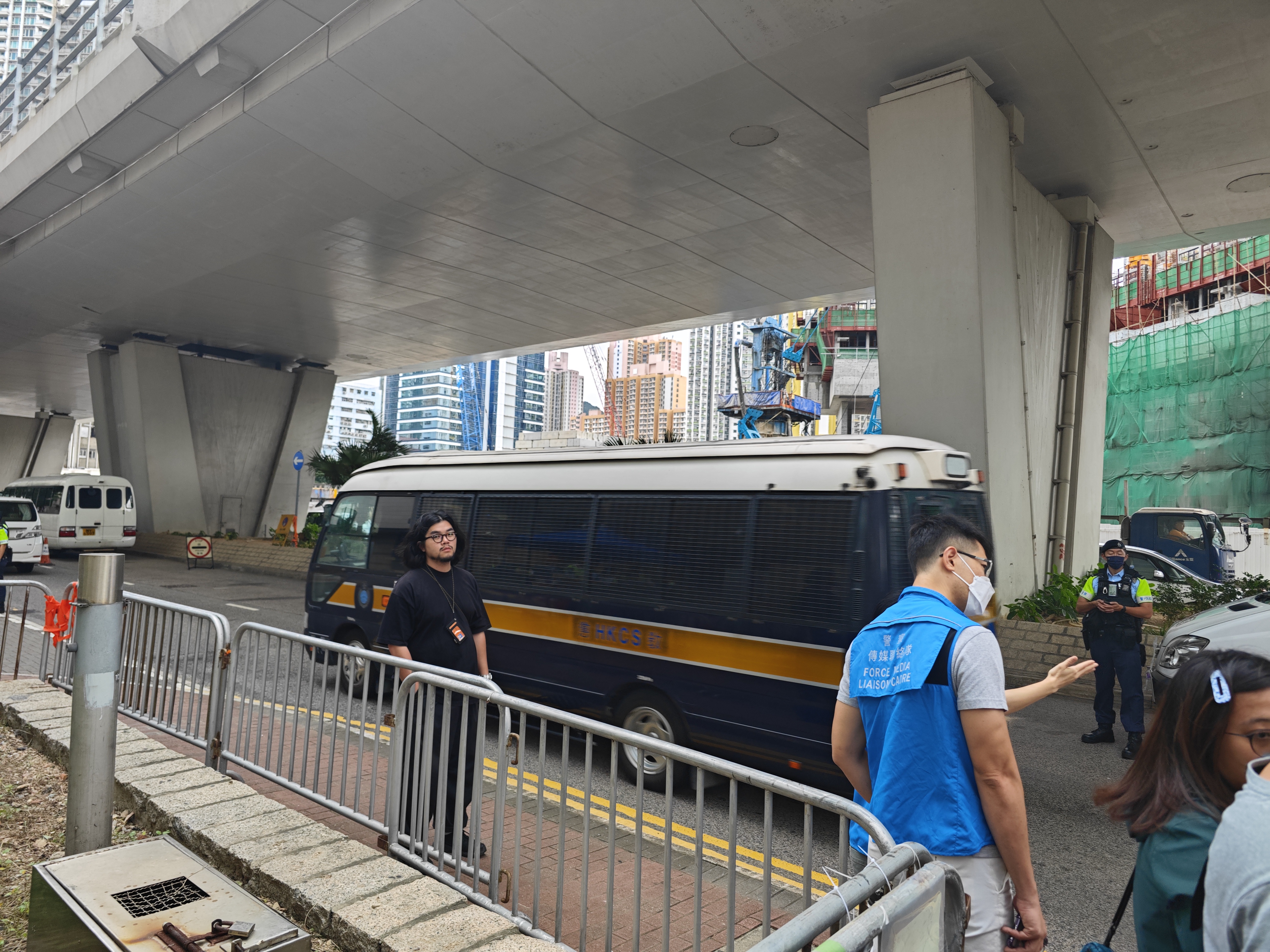 今早,西九龍法院大樓周圍加強安保,警方出動裝甲車,數名警方人員在現場巡邏。約7時36分,載有被告的第一輛囚車駛入法院大樓;第二輛囚車在約8時7分進入法院大樓;第三輛囚車在約8時12分抵達;第四輛囚車約8時16分到場;第五輛囚車約8時17分進入法院大樓;第六輛囚車約8時22分進入法院大樓;第七輛囚車約8時25分到達。