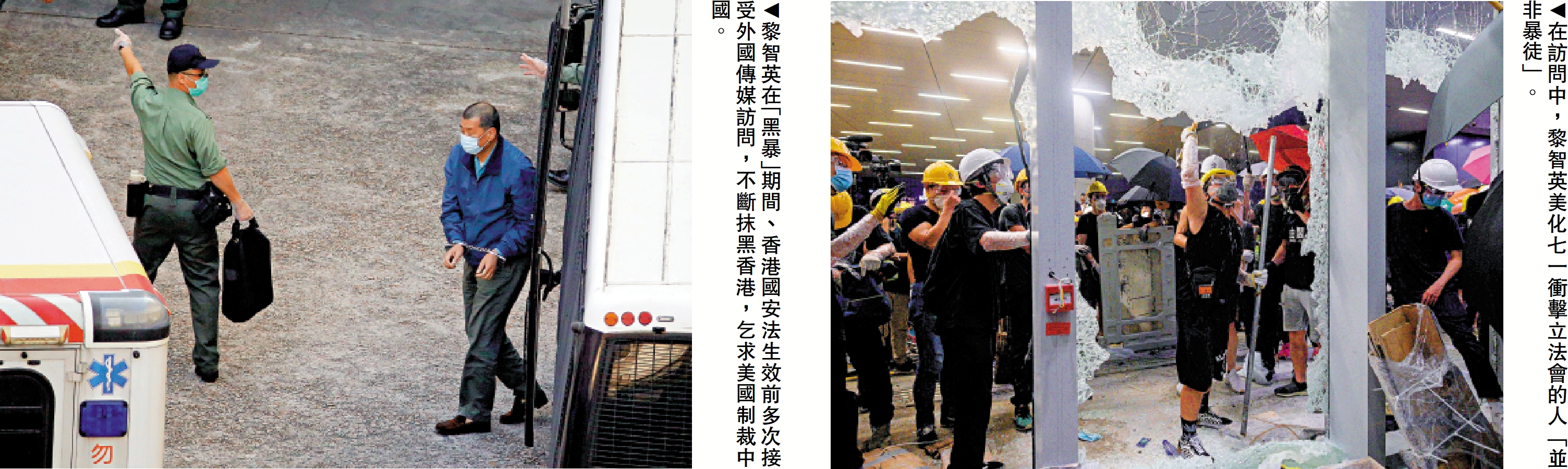 黎智英在訪問中稱,如美國與中國冷戰,香港會站在美國一邊,犧牲性命、自由、所擁有的一切,站在前線為美國而戰,又呼籲美國時任總統特朗普制裁中國。