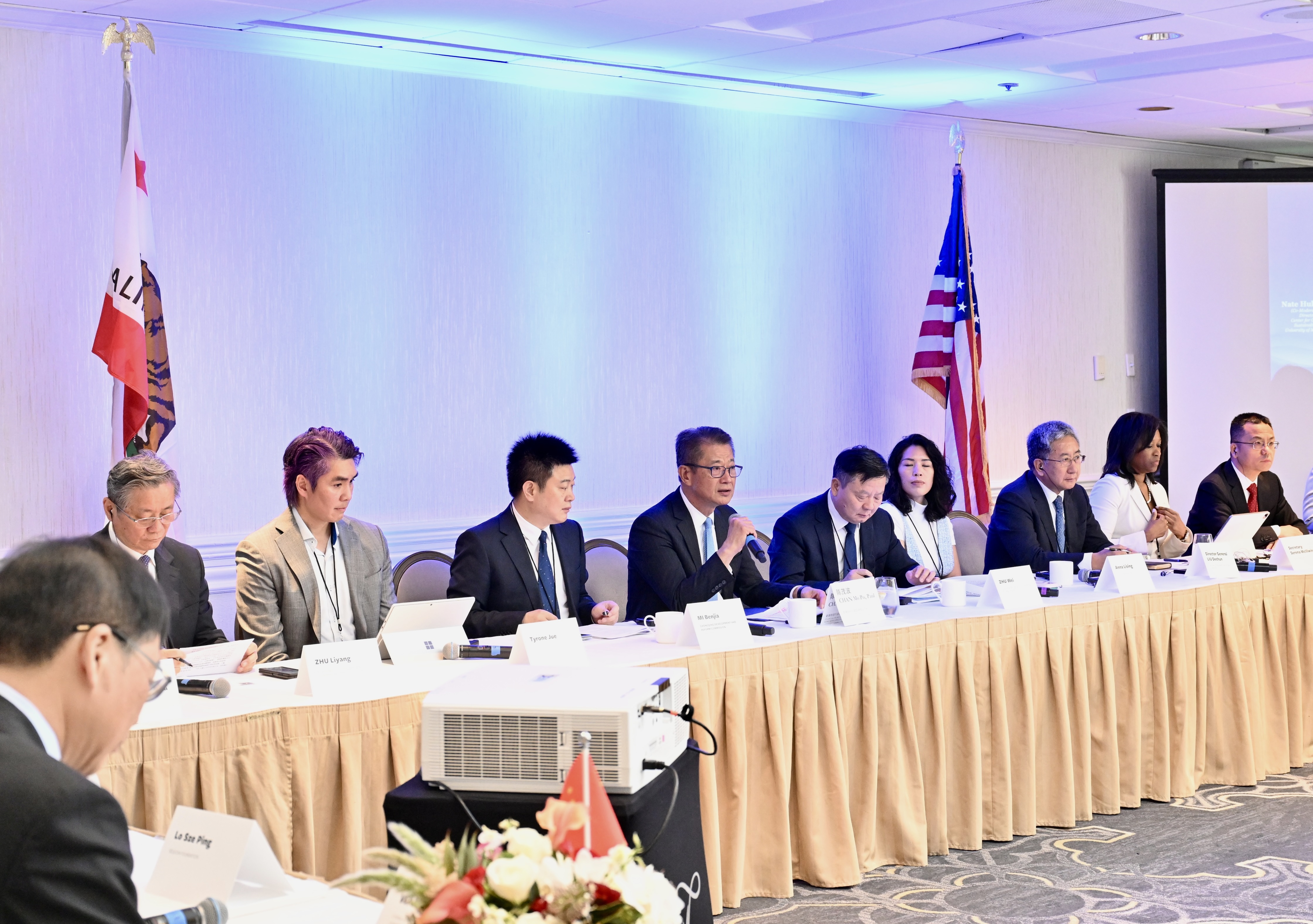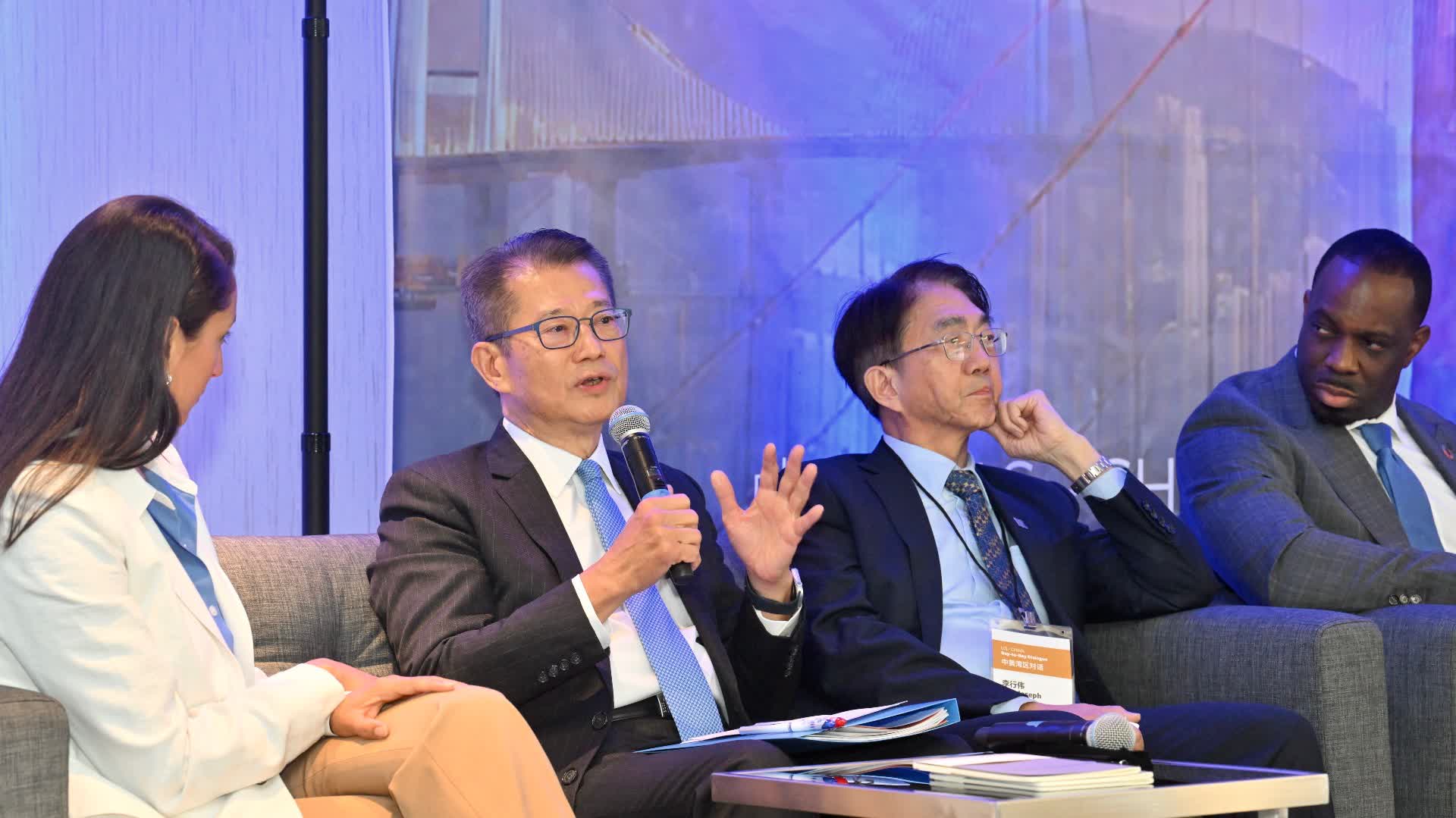 財經事務及庫務局副局長陳浩濂亦有參與該環節。他表示,香港作為國際金融中心,亦為亞洲最大的綠色和可持續債券發行中心,可引導國際綠色資本投向兩個灣區的綠色項目、綠色產品和綠色科技,從而貢獻中美兩國以至全球的經濟綠色轉型和應對氣候變化工作。
