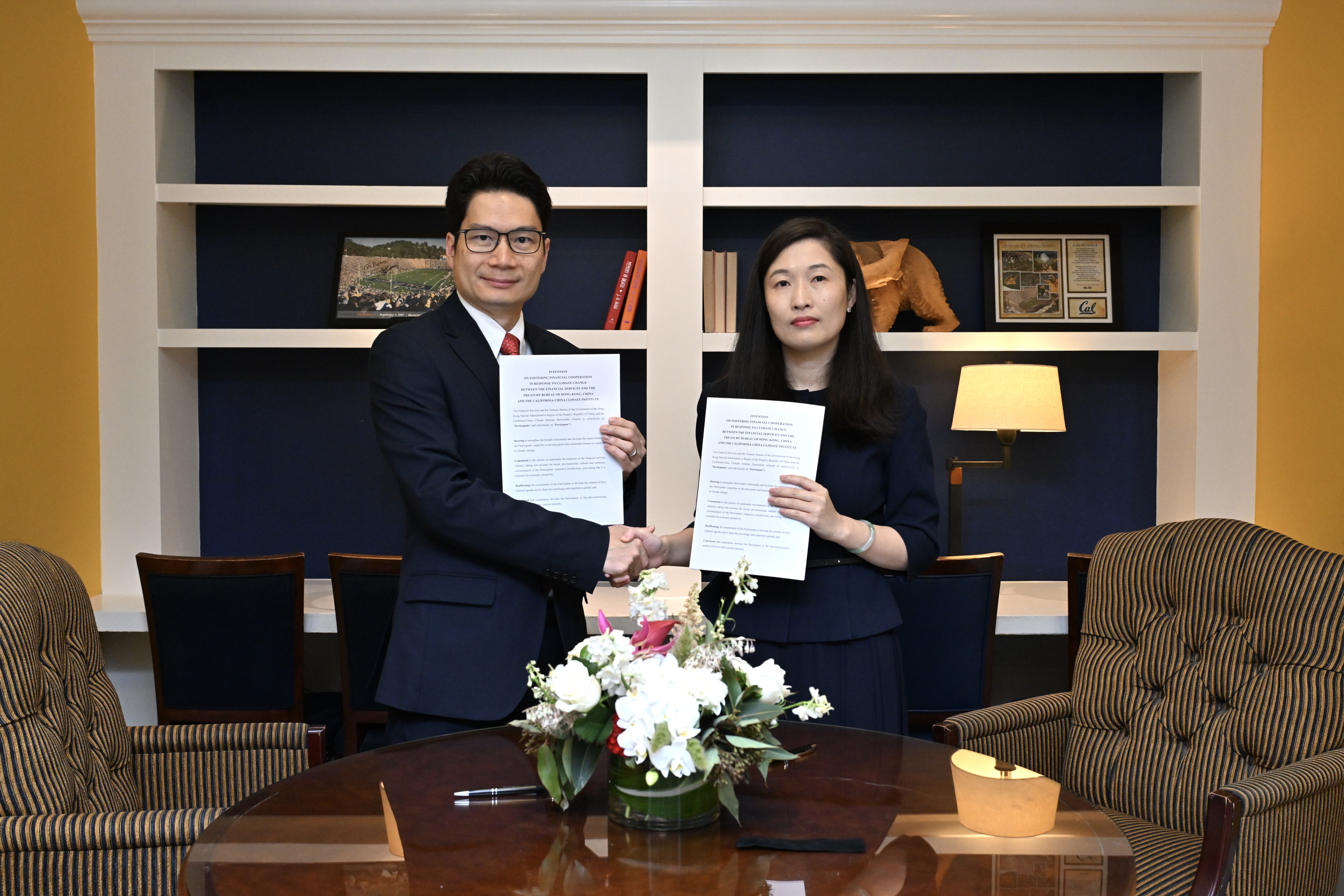 陳茂波續指,乘着這次灣區對話的契機,香港與三藩市灣區夥伴簽訂了三項合作意向書或備忘錄,包括:(一)財經事務及庫務局與加州—中國氣候研究院簽訂合作意向書,就碳市場發展及可持續金融等範疇加強合作;(二)香港投資推廣署與美國三藩市的灣區委員會簽署合作備忘錄,促進兩地投資推廣及推動綠色可持續發展方面的交流;及(三)香港大學氣候及碳中和研究中心,與加州—中國氣候研究院簽訂合作意向書,促進人才培育、青年交流及培訓。