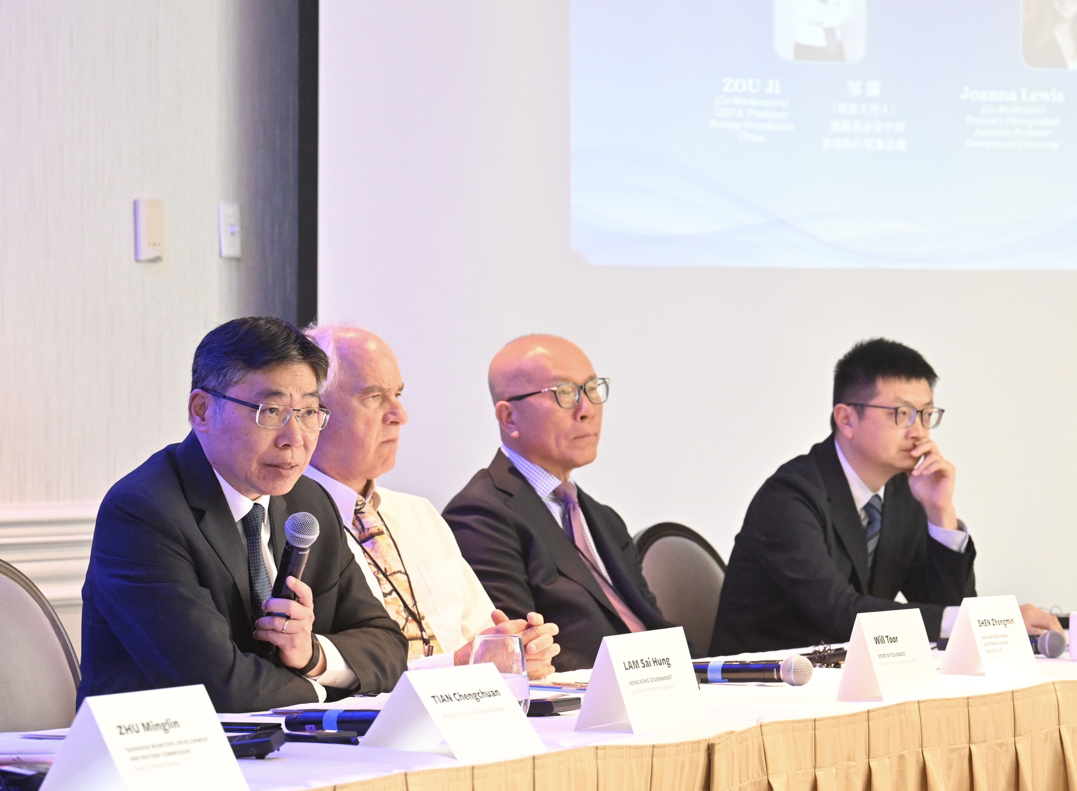 運輸及物流局局長林世雄參與題為「潔淨能源和低碳創新」以及「地方氣候富韌性的發展」的圓桌討論環節。林世雄闡述了香港在推動綠色航運的方向及措施。林世雄表示,國家在「十四五」規劃及《粵港澳大灣區發展規劃綱要》明確支持香港作為國際航運中心的地位,而香港亦是全球最繁忙的港口之一。香港以綠色港口、綠色船隊及綠色專才為主軸,着力推動綠色航運。推動潔淨能源及低碳方案,除了為對抗氣候變化作出貢獻,亦可提升本港航運業的競爭力。
