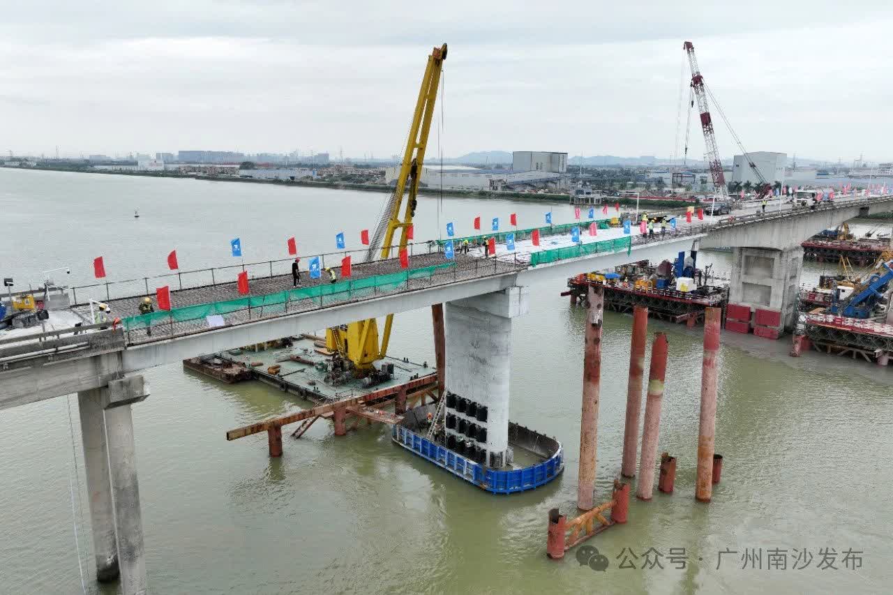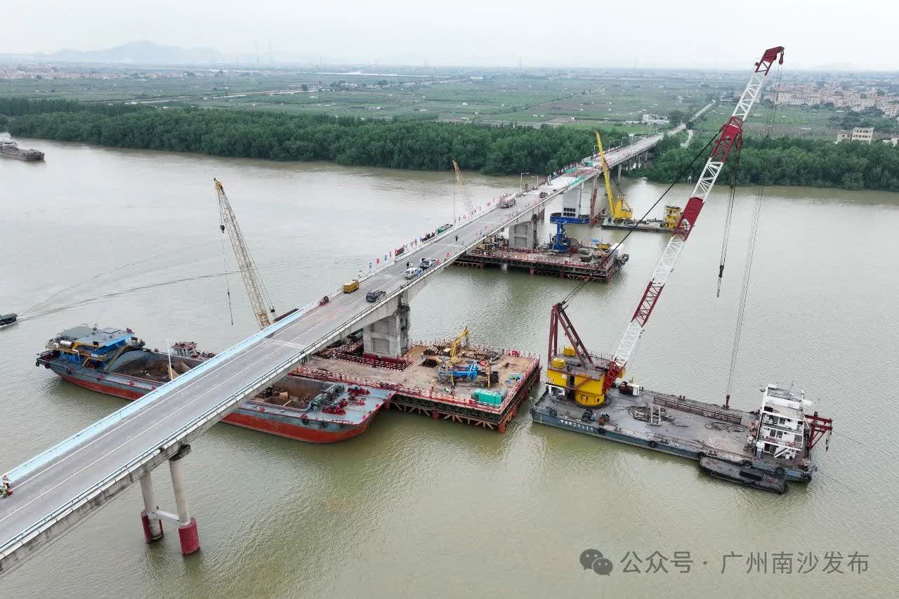 南沙區交通運輸局相關工作人員介紹,通過參建各單位的通力合作、多措並舉,24小時三班倒不間斷施工,五十天內完成了樁基礎、承台、墩身、架梁等作業,比原定工期縮短了十天。目前瀝心沙大橋搶修工作已進入到橋面系翻修、護欄安裝等收尾工程,瀝心沙大橋恢復通車指日可待。接下來,將進一步加快推進後續工作,在完成檢測驗收後盡快開放交通。同時將利用航道封航的窗口期,對通航孔的防撞能力進一步提升。