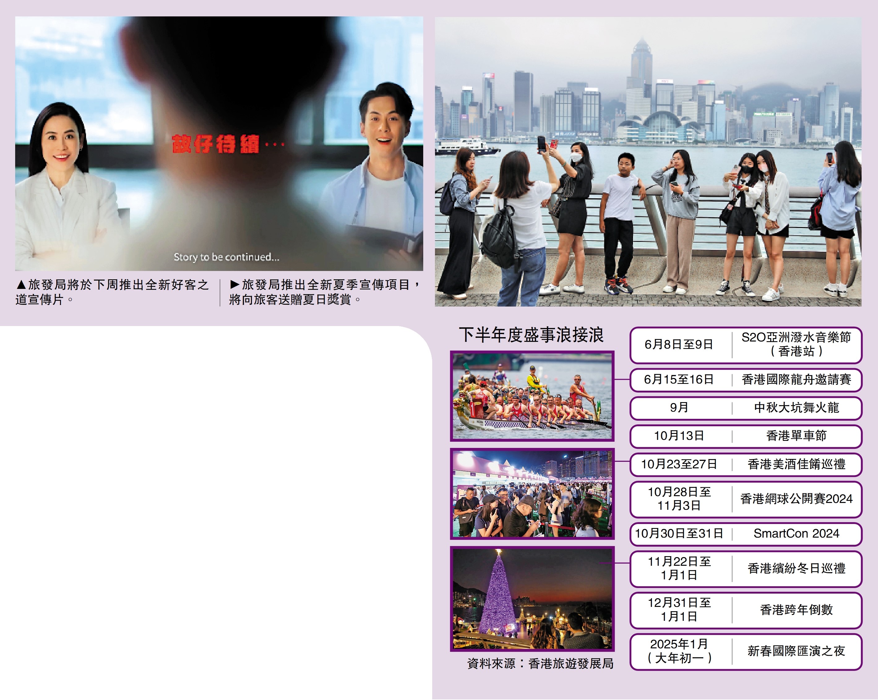 旅發局並正籌備全新的夏季宣傳項目「香港·樂在當夏」,向旅客送贈夏日獎賞,涵蓋交通、消費優惠等,連同下半年一連串的大型盛事,吸引旅客來港感受香港獨特魅力。