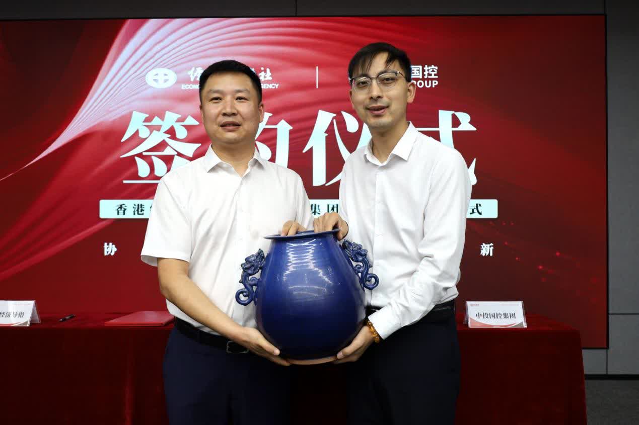 香港經濟導報駐河南辦事處主任賀永召、中投國控集團董事長韓帥,以及雙方管理層出席簽約儀式。