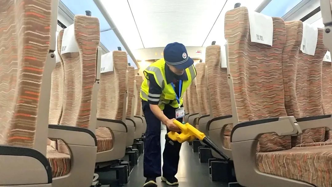 記者了解到,按照相關規範,動車組列車出庫前要進行整備,保證車廂內外各部位整潔,服務備品配備齊全,定位放置,定型統一。