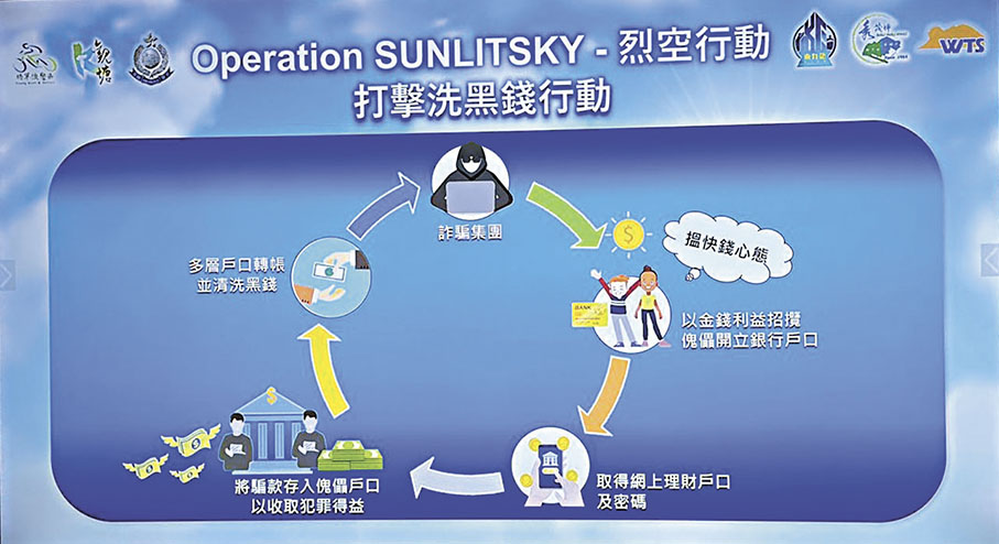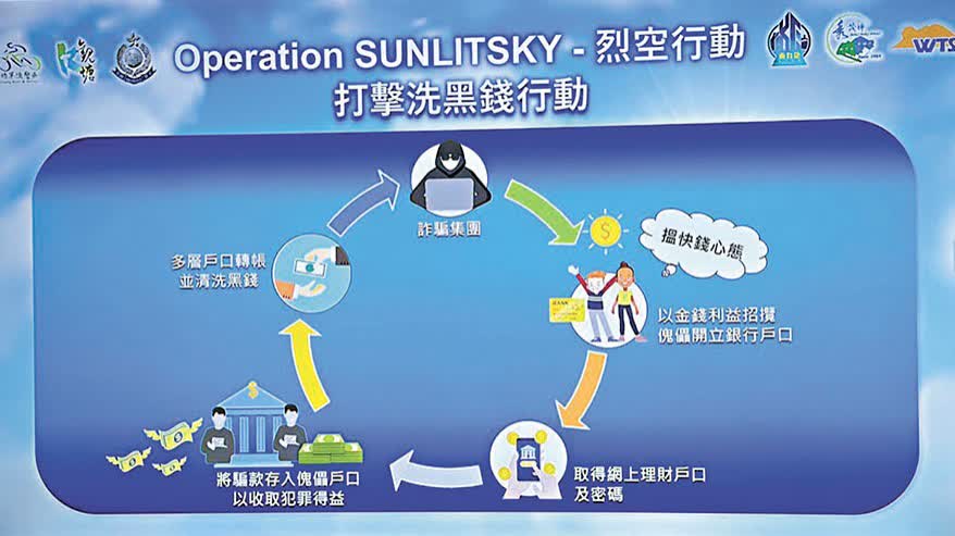 警方調查發現,有不少人為了「搵快錢」,透過網上社交平台或朋友介紹,以幾百至幾千元報酬向詐騙集團提供個人資料,在虛擬銀行開設戶口,並將登入資料和密碼轉交集團成員。集團成員將騙款存入傀儡戶口,再被快速轉走,再透過多層轉賬清洗黑錢。
