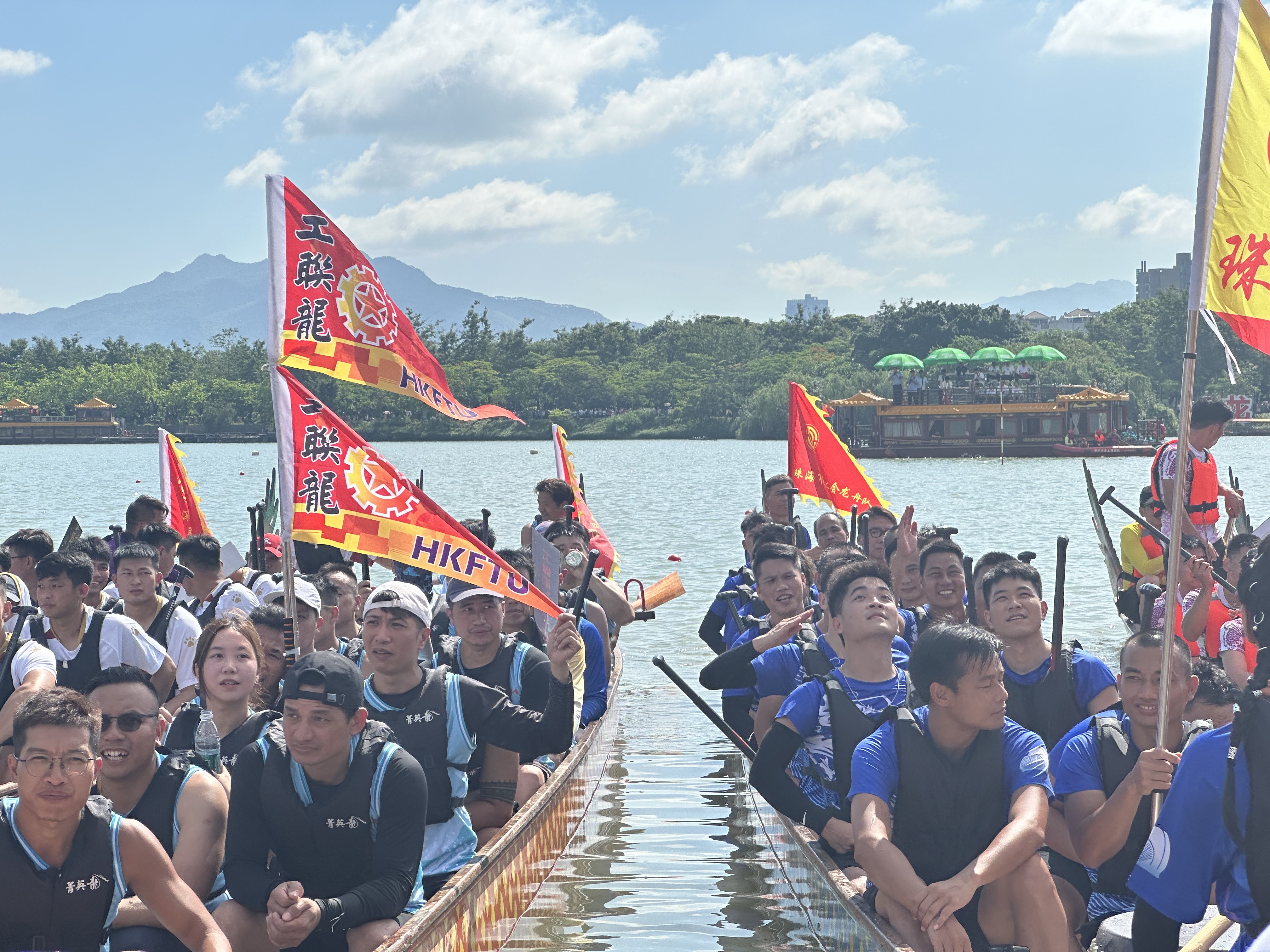 「重在參與,也重在交流體驗。」香港工會聯合會副會長程岸麗表示,今次龍舟隊30位選手參賽,來自香港各行各業的職員代表,其中建造業人士積極參與較多。她表示,第一次參加大灣區內的職工龍舟賽事交流活動,在山湖靚麗的星湖一起競技,氛圍濃厚之餘,也令不少香港青年感受到了大灣區的人文相親和山水秀麗。