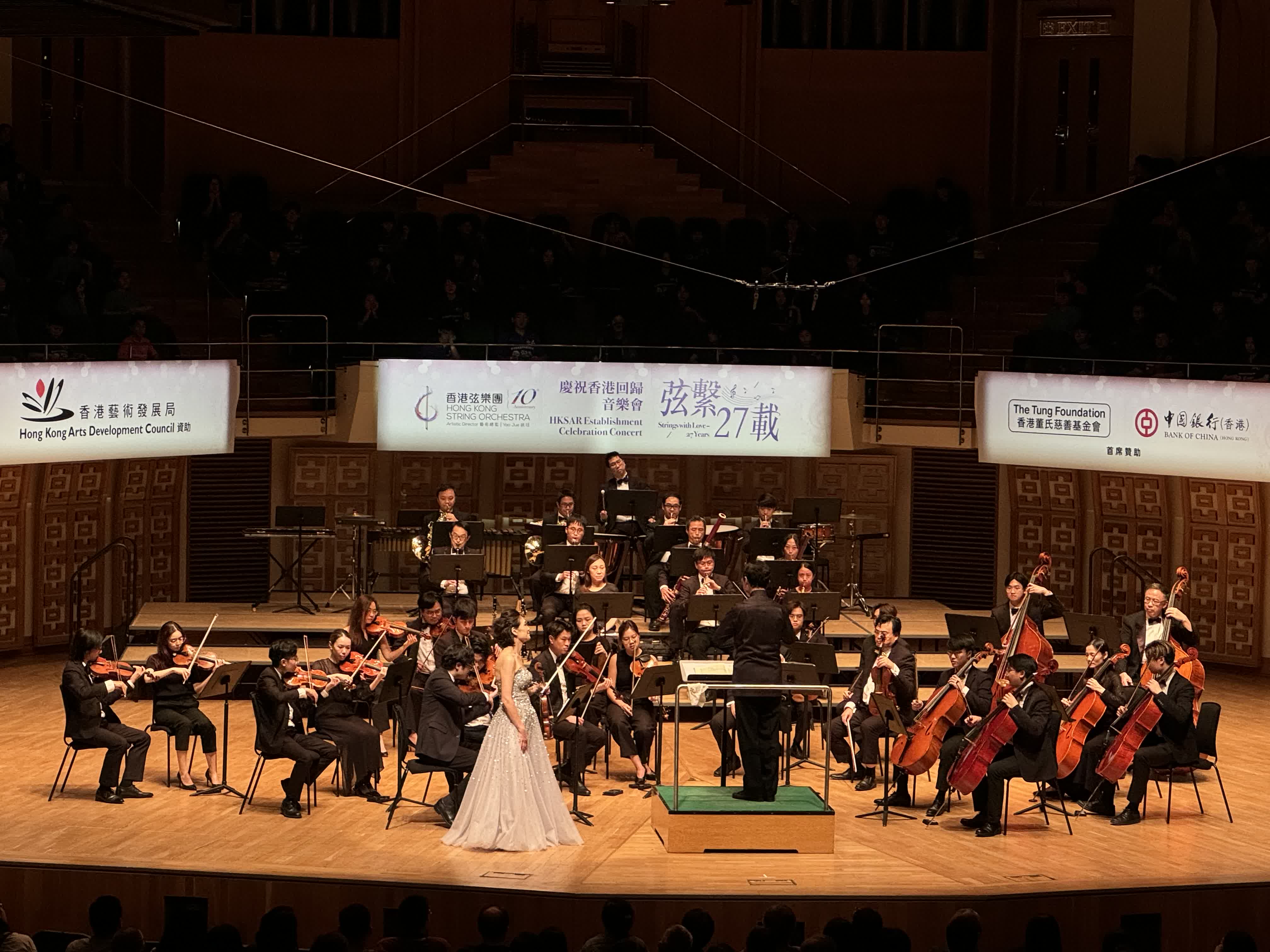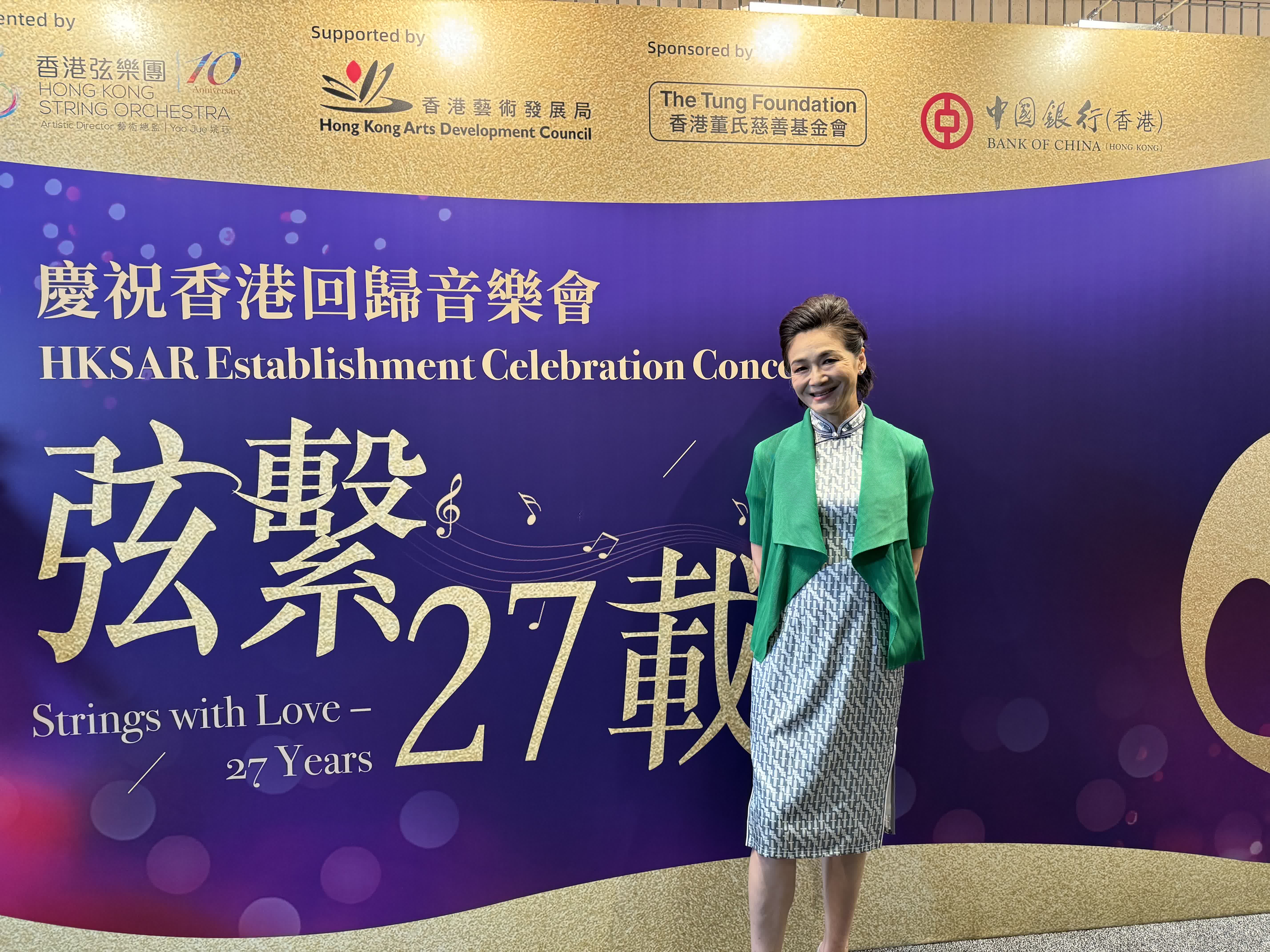 (大公报记者 颜琨)為慶祝香港特別行政區成立27周年暨香港弦樂團成立10周年,香港弦樂團今日(2日)假香港文化中心音樂廳舉行《弦繫27載》慶祝香港回歸音樂會。由國際知名小提琴家、香港弦樂團創辦人及藝術總監姚珏,與史上首位跨越中西方、同時擔任交響樂團及華樂團音樂總監的指揮家葉聰,一同帶領香港弦樂團奏出動人心弦的樂章,壓軸環節更與觀眾攜手呈現「東方之珠千人大合奏」,透過壯麗的畫面和音樂的完美結合為音樂會寫上完美句號。