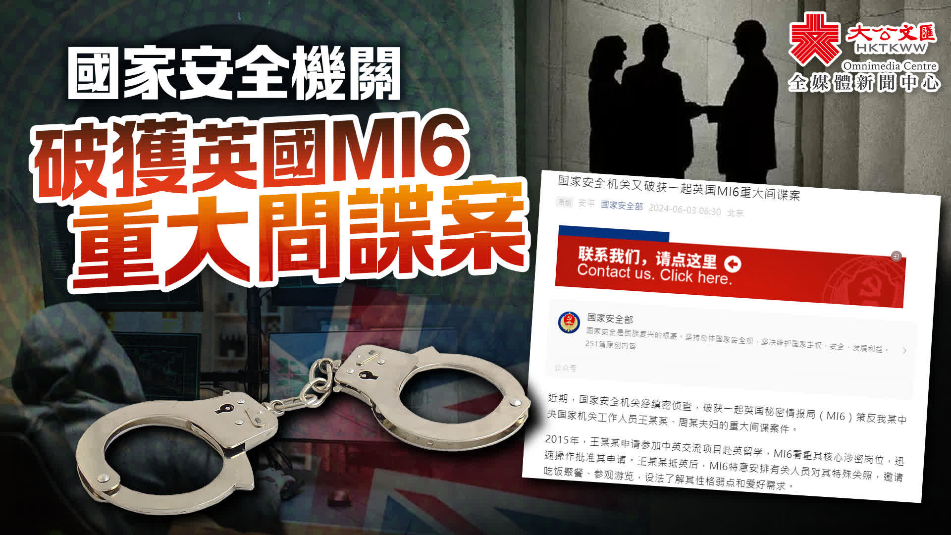 近期,國家安全機關經縝密偵查,破獲一起英國秘密情報局(MI6)策反我某中央國家機關工作人員王某某、周某夫婦的重大間諜案件。