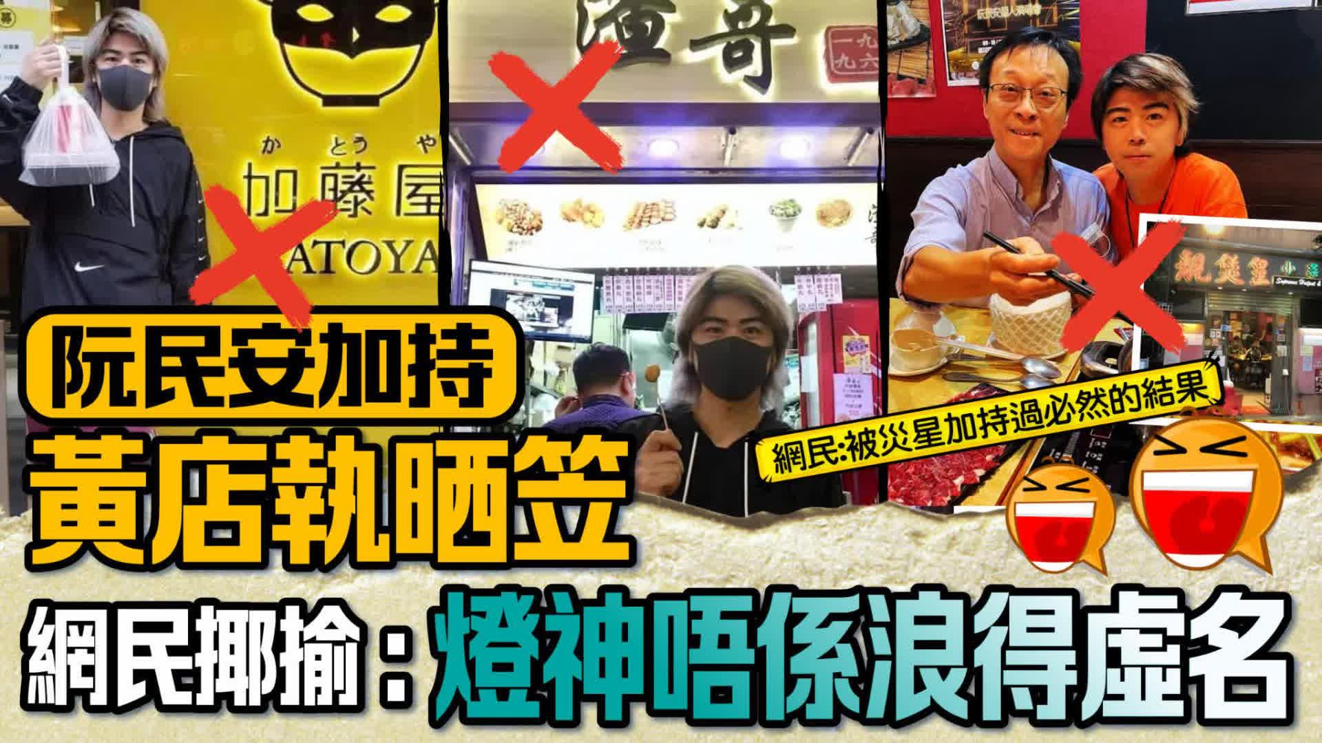 有網民近日發文盤點阮民安宣傳過的「黃店」都執得七七八八,例如有「加藤屋」、「渣哥一九九六」、「桔梗Cafe」、「靚煲皇小菜坊」、「彩虹串燒專門店」等等。有網民認為「黃店」執笠係必然結果,「被災星加持過必然的結果」,揶揄「去嗰間執嗰間」、「所到之處寸草不生」、「黃絲燈神唔係浪得虛名」。