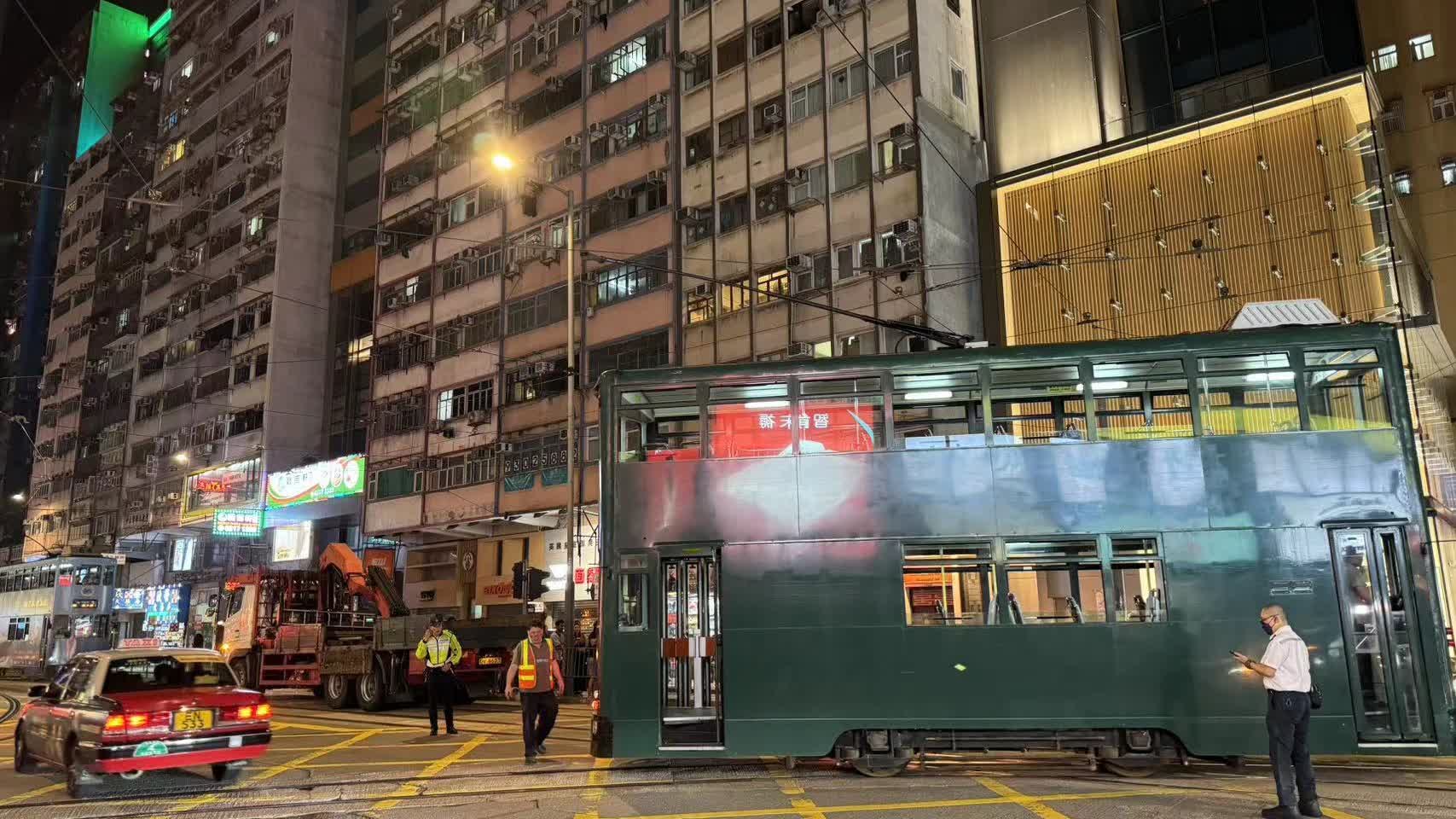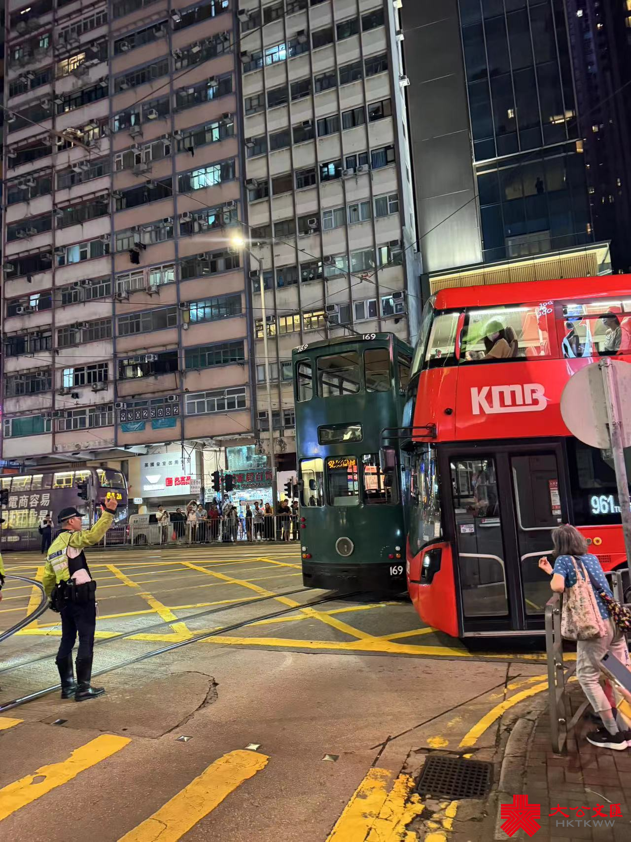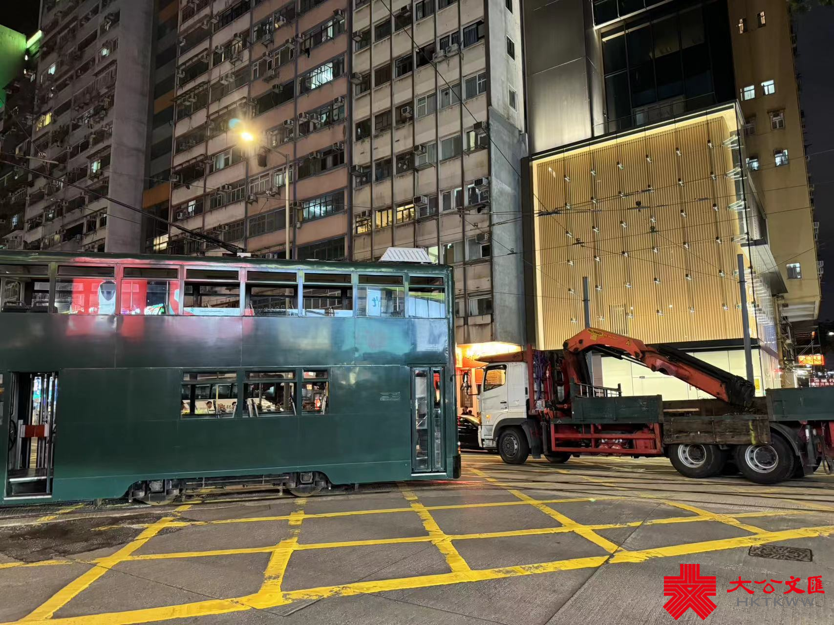 大公文匯全媒體報道,今日(4日)晚上8時許,一輛在灣仔軒尼詩道西行電車,駛至天樂里交界時,疑因撞到路軌上一根木條出軌,事件中無人受傷。