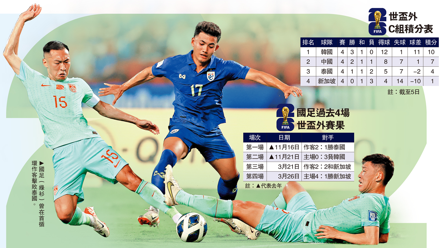 大公報據中新網報道:結束了連續3天的封閉集訓,4日晚中國國家男子足球隊訓練場再次向媒體開放,這也是球隊「生死戰」前最後一次常規訓練。國足將於今晚8時在遼寧瀋陽奧林匹克體育中心主場對陣泰國,力爭世界盃外圍賽亞洲區第2圈小組賽C組出線席位,國足如能全取3分,便可提前一輪出線。目前國足4戰積7分排小組次席,泰國則以4分緊隨排第3位。