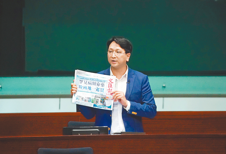 (香港文匯報記者 廣濟)癌症及罕見病患者食唔起進口專利藥物、幾經折騰北上求醫的問題,自香港文匯報上月23日及24日報道後,引起各界關注。昨日,立法會議員鄧家彪就「積極建設香港成為亞洲醫療創新樞紐」議案回應時,特別展示香港文匯報當日報道,指香港部分罕見病自費藥屬天價,同一間外國藥廠的同款藥物,內地價格僅萬餘元人民幣,為香港藥價的5%。他說,「我最近發現身邊愈來愈多人返內地求醫買藥,不是因為香港沒有藥,而是因為香港的藥價實在太貴,尤其是癌症藥和罕見病藥物,貴到連中產都買唔起。」