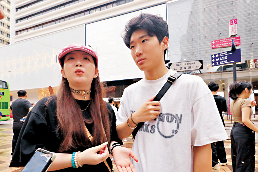 黑龍江旅客范小姐及余先生:第一次來香港,曾在網上看到有關香港旅遊問題的報道,會有點擔心(的士拒載),但來了後發覺不管是問路還是什麽,港人都很熱情,但還未有打的(的經歷),還是搭地鐵,因為很方便,(香港)留一晚明天就去澳門。