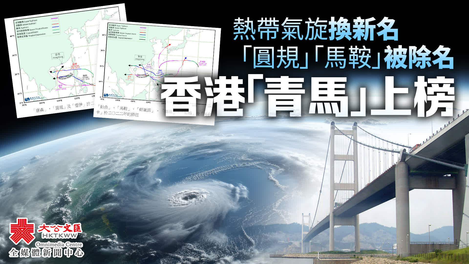 大公文匯全媒體報道,西北太平洋和南海的熱帶氣旋名單今年新增9個名字:「蜻蜓」、「青馬」、「道璣」、「坡鹿」、「阿穆丘」、「古莎莉」、「核桃」、「沙布爾」及「浮蓮」,分別取代舊有名字:「尼格」、「馬鞍」、「圓規」、「軒嵐諾」、「馬勒卡」、「鮎魚」、「奧鹿」、「雷伊」及「康森」。