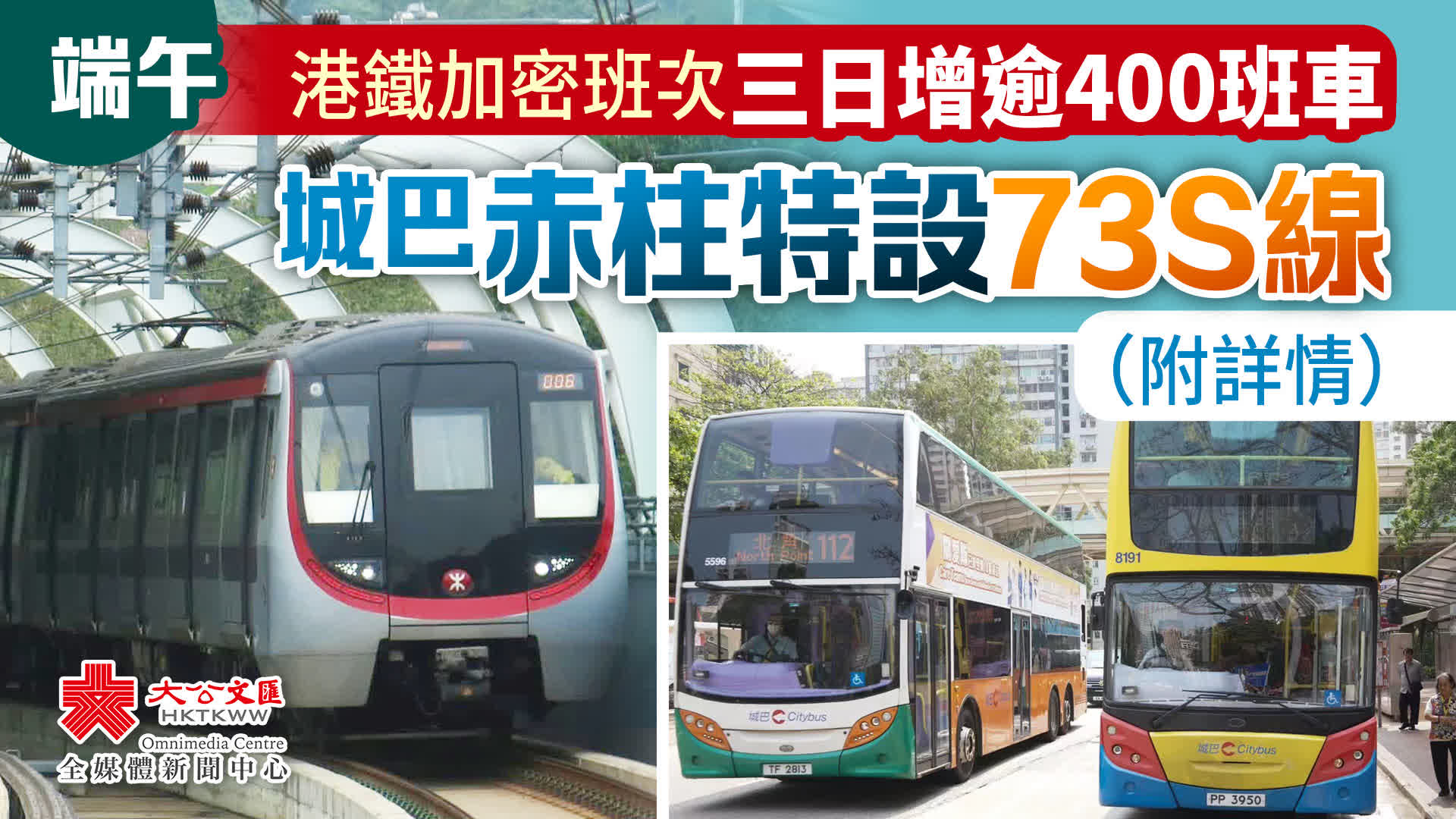 大公文匯全媒體報道,為方便市民及旅客於端午節長周末乘車外出,港鐵公司將於本周六至下周一(6月8日至10日)加強六條鐵路綫的列車服務,涵蓋全日不同時段,三日合共增加超過四百班車。城巴多個線路亦作出特別調整。