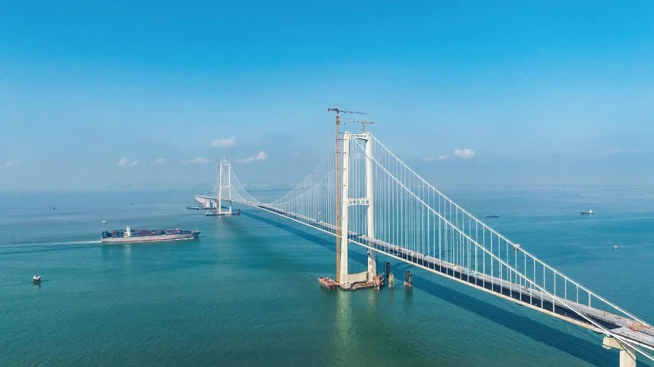 據了解,主跨1666米的深中大橋創造了離岸海中懸索橋跨徑最大、通航凈空最高等五項世界紀錄。
