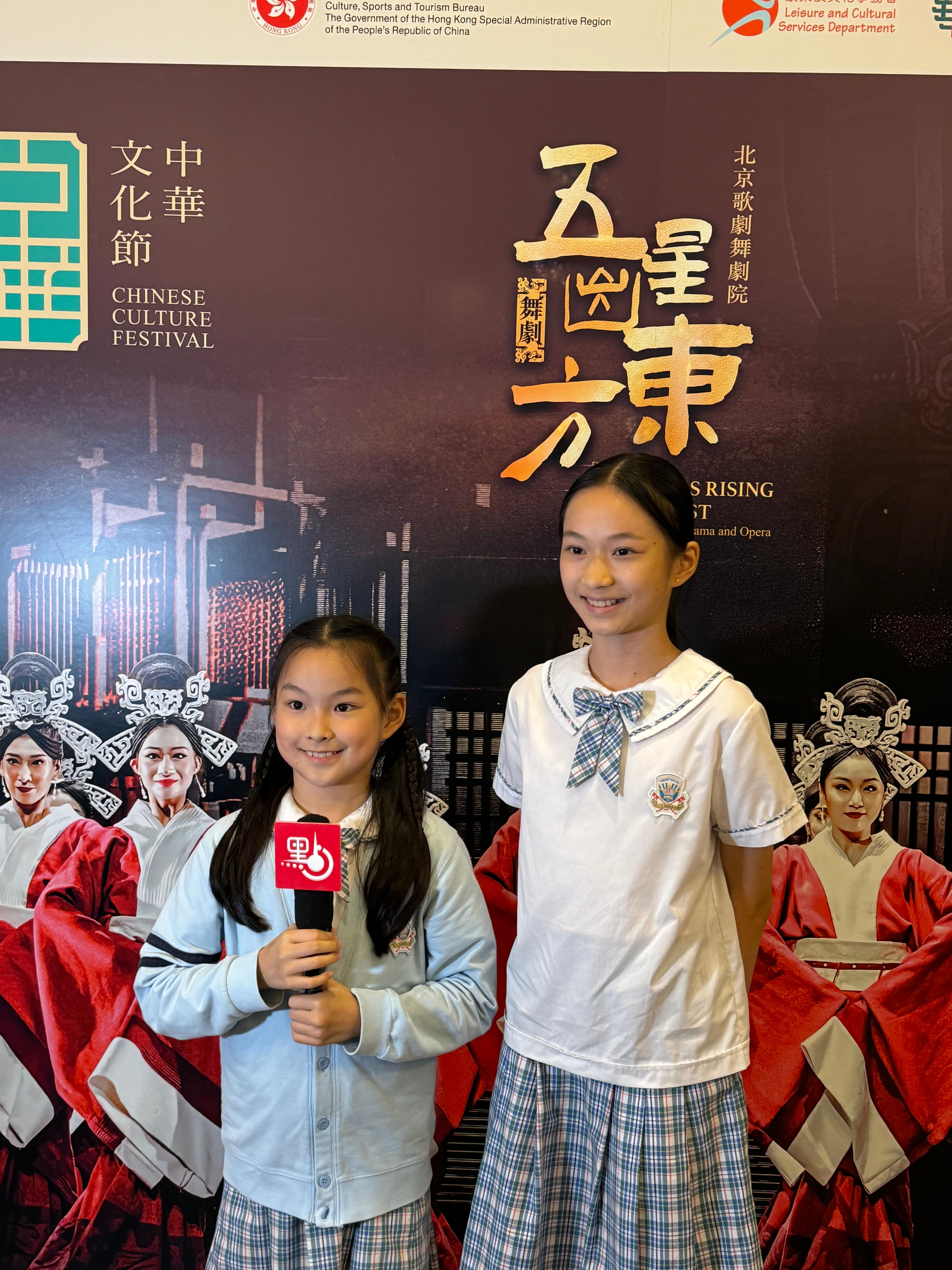 就讀於香港浸會大學附屬學校王錦輝中小學的歐奕希、歐奕言姐妹今次在媽媽和老師的陪同下來到彩排現場欣賞表演。姐妹倆在學校里跟隨老師學習中國舞。而在課余時間,姐姐歐奕希學習芭蕾舞,妹妹歐奕言學習爵士舞。