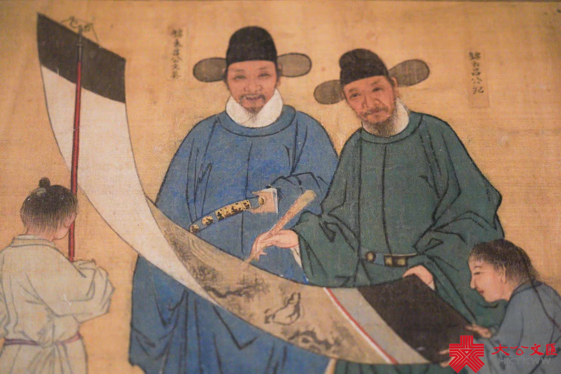 這次展出的《竹園壽集圖》是本次的重點展品,就是宮體畫派的代表之作。其由宮廷畫家呂文英繪人物,呂紀繪花鳥、竹石等背景,為「二呂」合璧之作。畫作描繪明了當時上層官吏的生活,畫中賓主皆着官袍,或坐談,或題詩,或觀畫,人物雖多但秩序井然,一派祥和喜樂的氣氛。與明初宮廷畫家謝環所繪《杏園雅集圖》相似,此圖及卷後序文、題詩等即紀其事,畫中人物容貌寫實,主要人物甚至有姓名標註,充分體現明代宮廷生活與宮體派畫作的肖像畫特色。