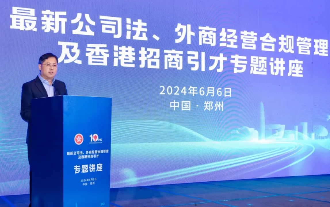香港特別行政區政府駐武漢經濟貿易辦事處駐河南聯絡處6月6日於河南省鄭州市舉辦「最新公司法、外商經營合規管理及香港招商引才」專題講座。是次講座由河南省商務廳、河南省人民政府港澳事務辦公室及香港特別行政區政府投資推廣署聯合主辦,中國(河南)自由貿易試驗區鄭州片區管委會協辦。