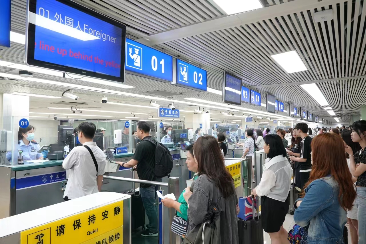 「今天和家裏人去香港短遊和購物,雖然是第一次出境,但口岸這邊的標識很清楚,民警也很熱心解答問題,通關很方便。」方女士帶着小孩歡喜地向記者分享。8日上午,羅湖口岸出境大廳湧現大批出境遊的內地居民,以家庭出遊及學生組團出行為主,入境方向受香港端午公眾假期影響,許多香港居民利用假期來深過節、探親、遊玩。由於端午節深圳及周邊各類豐富多彩的活動安排,不少外國旅客也來感受中國傳統文化氛圍,從羅湖口岸入境的新加坡、韓國等外籍旅客以及144小時免簽旅遊團也比平日有所增加。