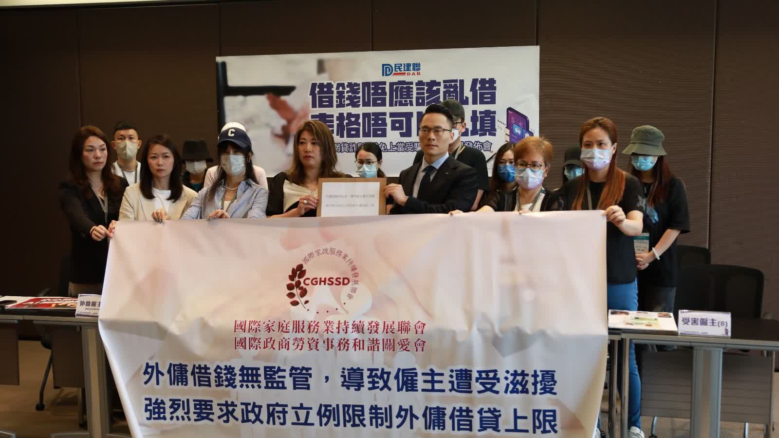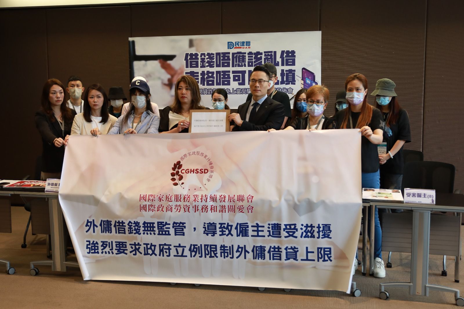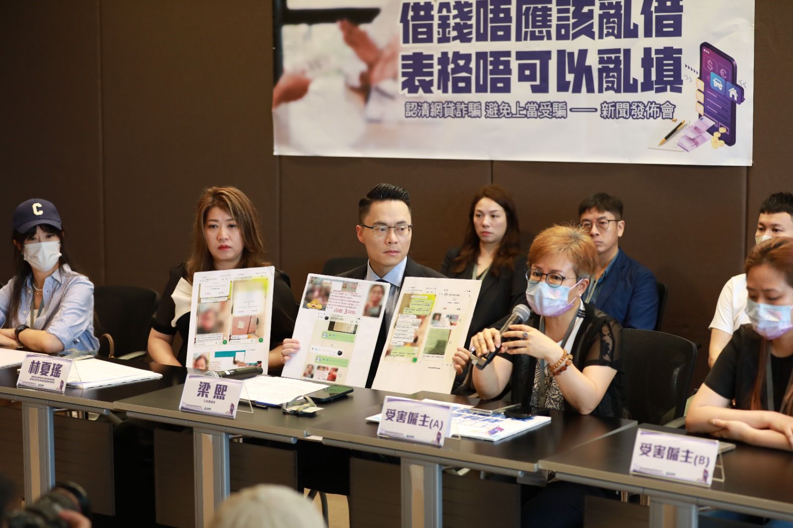 約20名受害僱主在記者會上現身說法作出控訴,指其委聘的外傭早前被網貸廣告以不同的名目吸引,填寫一些所謂的「網貸諮詢表格」,吸引外傭向其「諮詢」了解,一旦外傭提交表格後,就聲稱已完成批核,並立即將相關款項存入其提供的銀行戶口中。外傭不知就裏借取超高利息貸款,即使還錢後亦不得要領,甚至令僱主受不同手段的威嚇追債滋擾;有外傭更在被脅迫下,向放貸公司提供僱主的家庭照,其後有追數公司將僱主一家移花接木到色情照片上作威脅,迫使僱主為外傭被騙的行為「埋單」。