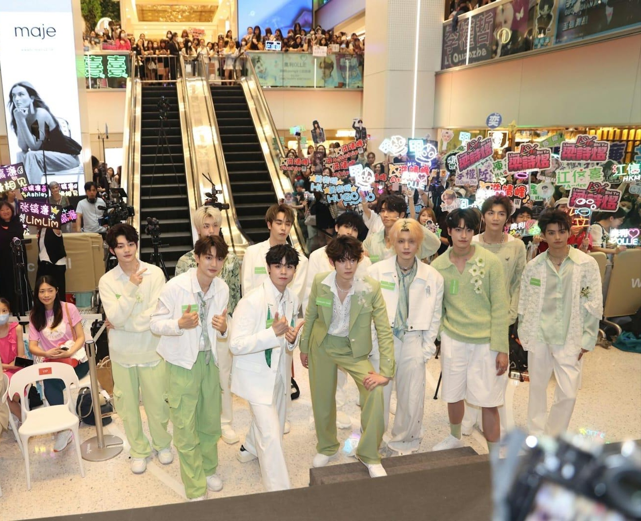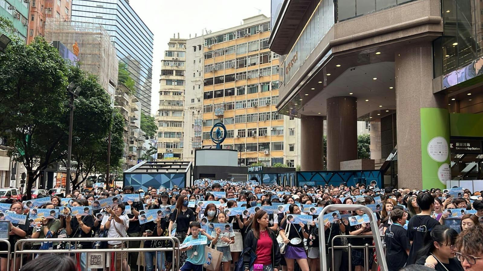 (大公文匯全媒體 特約記者 陳惠芳)男團LOONG 9原本4月底在港舉行首個粉絲見面會,可惜見面會因有「不可抗力」的因素而需要延期舉行。直到今日(9日)下午,LOONG 9共12子現身銅鑼灣商場,舉行簽名擊掌會。今日同時是男團MIRROR成員陳卓賢(Ian)的生日活動,並且同樣在銅鑼灣舉行。Ian雖然未有現身,但Fans們仍有心出來「曬馬」,迫爆商場外並舉Banner高唱生日歌。