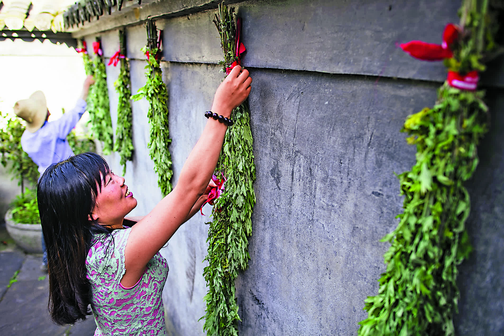 農曆五月被稱為「惡月」,傳統上,端午節不少習俗都跟禳毒驅疫有關,如掛菖蒲、驅五毒。掛菖蒲並不限於菖蒲單此一種植物,更泛指菖蒲、艾草、蘭草等芬香類植物。傳說掛上這些植物可保佑家中免受「五毒」入侵。掛菖蒲的習俗後來延伸至屋外,人們亦會簡單捆紮青草,造成配飾或花環,配戴當成掛菖蒲。