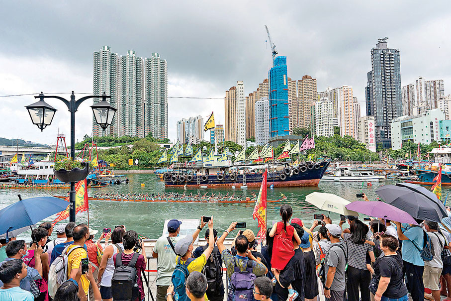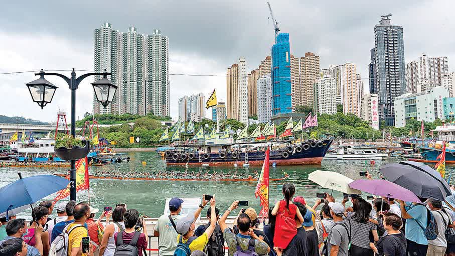 本港的龍舟比賽眾多,最讓鄭華明津津樂道的當屬香港仔避風塘的龍舟競渡大賽,他說,這項比賽最早於同治七年(1868年)舉辦,已有150多年歷史。現如今,一些龍舟賽改用現代的玻璃纖維龍舟,且常見於22人的「標準龍」和12人的「小龍」;而香港仔龍舟競渡大賽仍保留木製龍舟,有超過25米長的「大龍」參賽,一條船可容納約50人,極具觀賞性。「2024香港仔龍舟競渡大賽」比賽由區內組織,保留着傳統疍家文化,是本區以至中外人士熱捧的龍舟賽事。