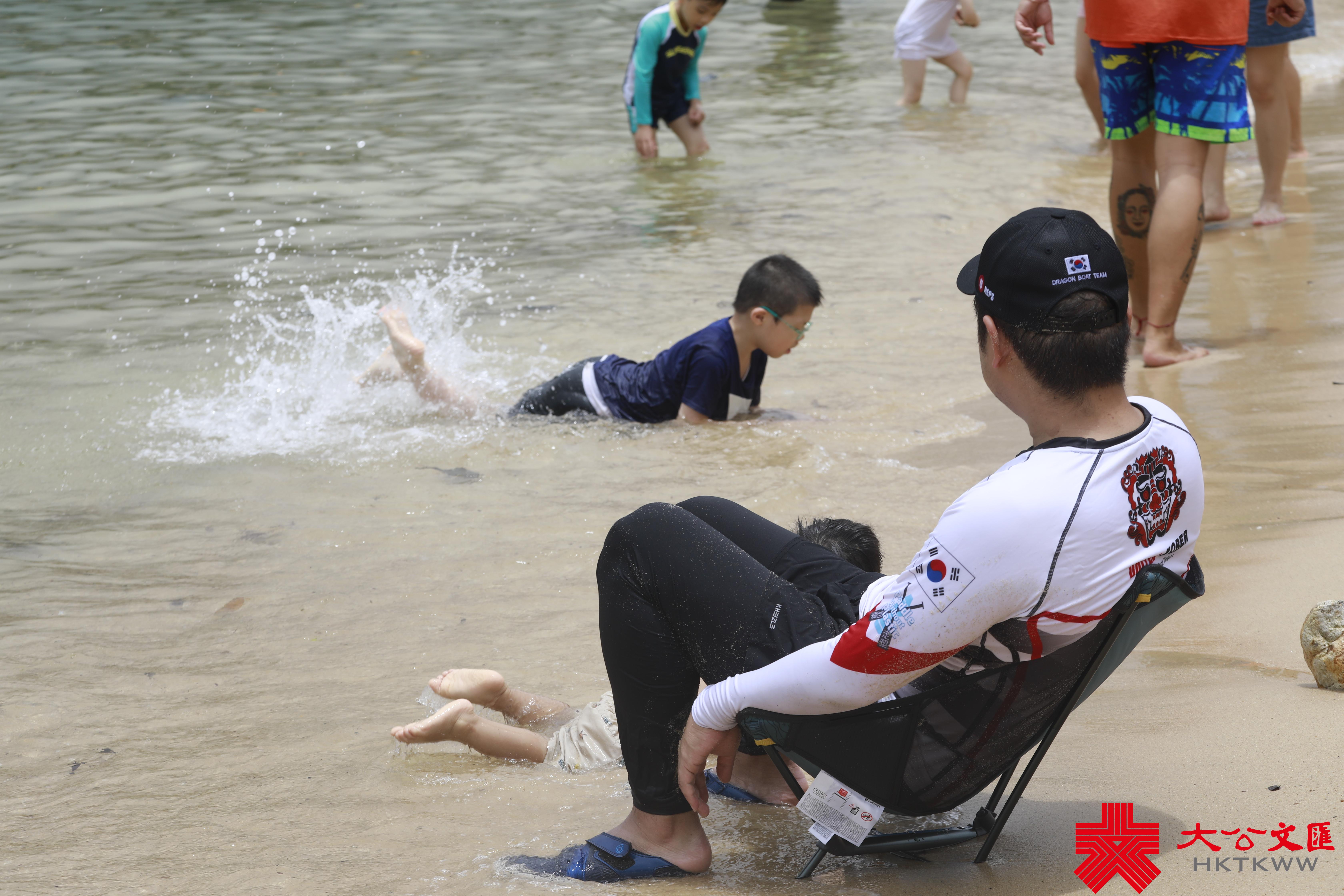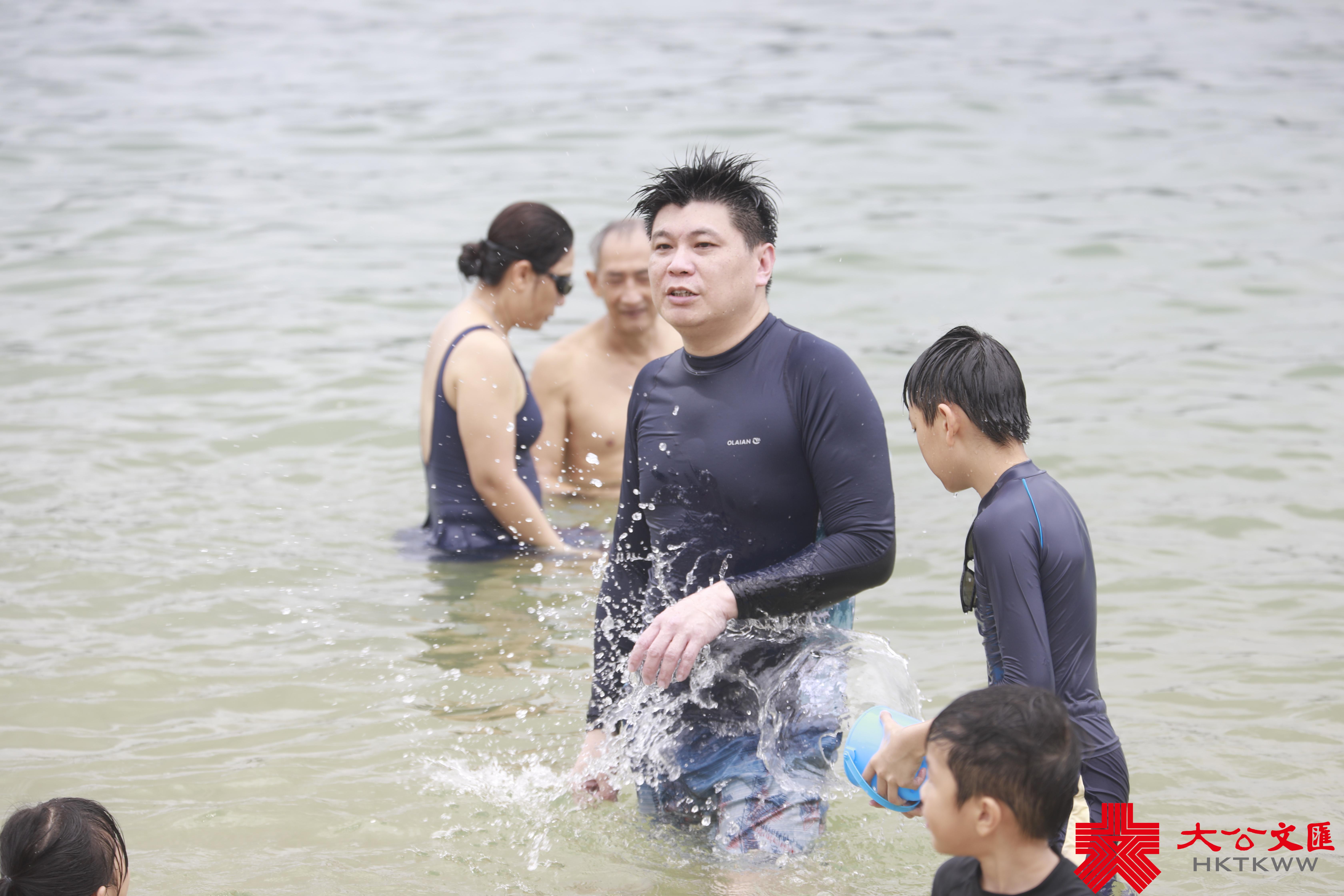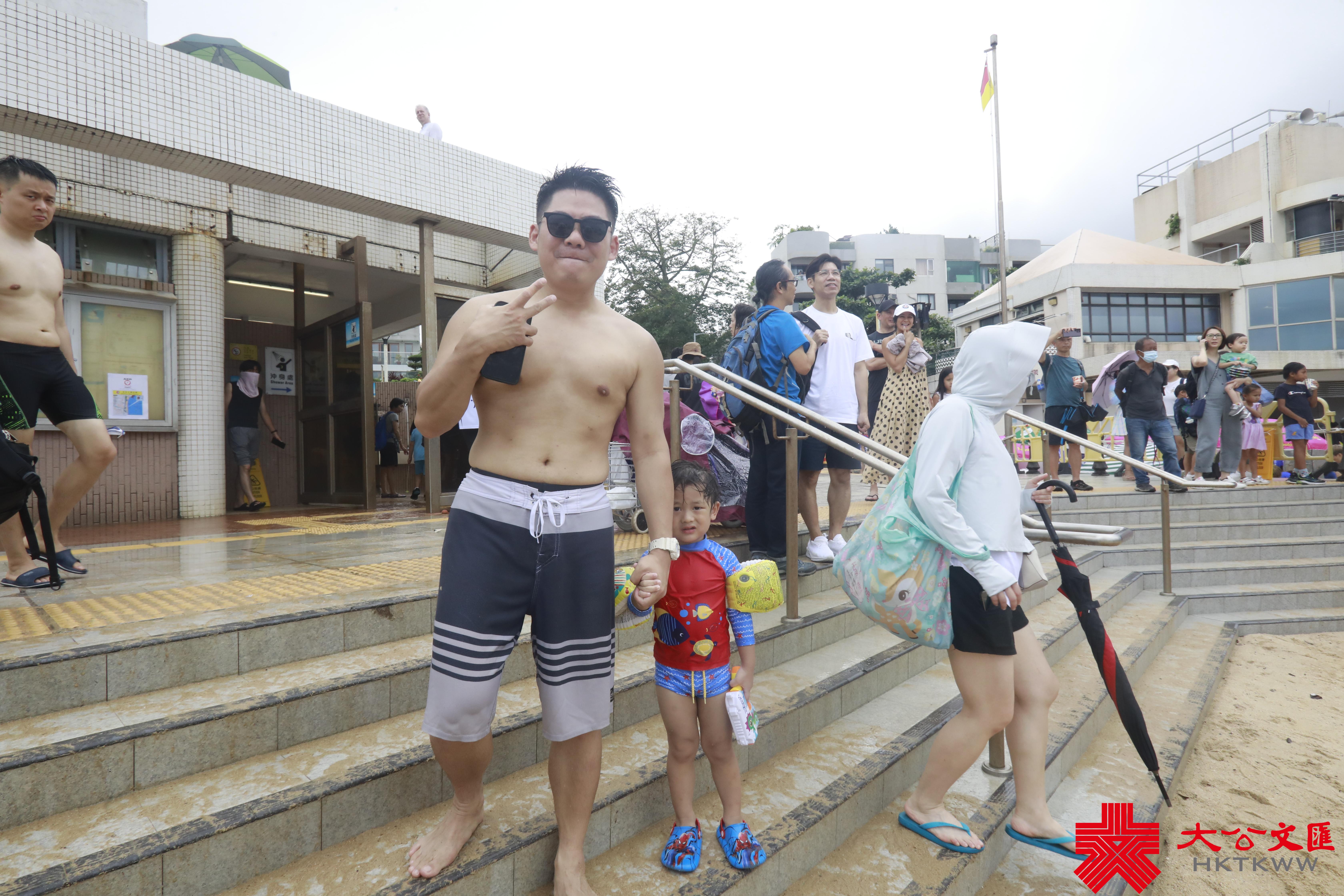 另一名泳客黃先生則居住柴灣,趁端午節假期陪同家人前來遊水,形容氣溫較預期中理想,而且剛好有驟雨,為炎熱的天氣降溫。他形容,「浸完龍舟水,財源滾滾來,身體冇病冇痛」。
