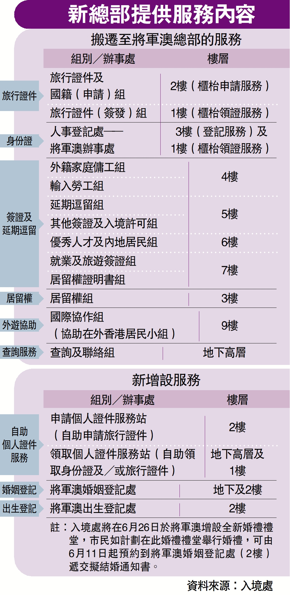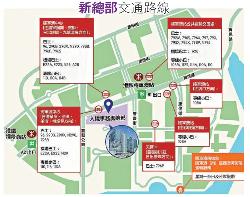 (大公報 記者 鄭文迪)服務市民34年的灣仔入境處總部完成歷史使命,今日起搬遷至將軍澳寶邑路。