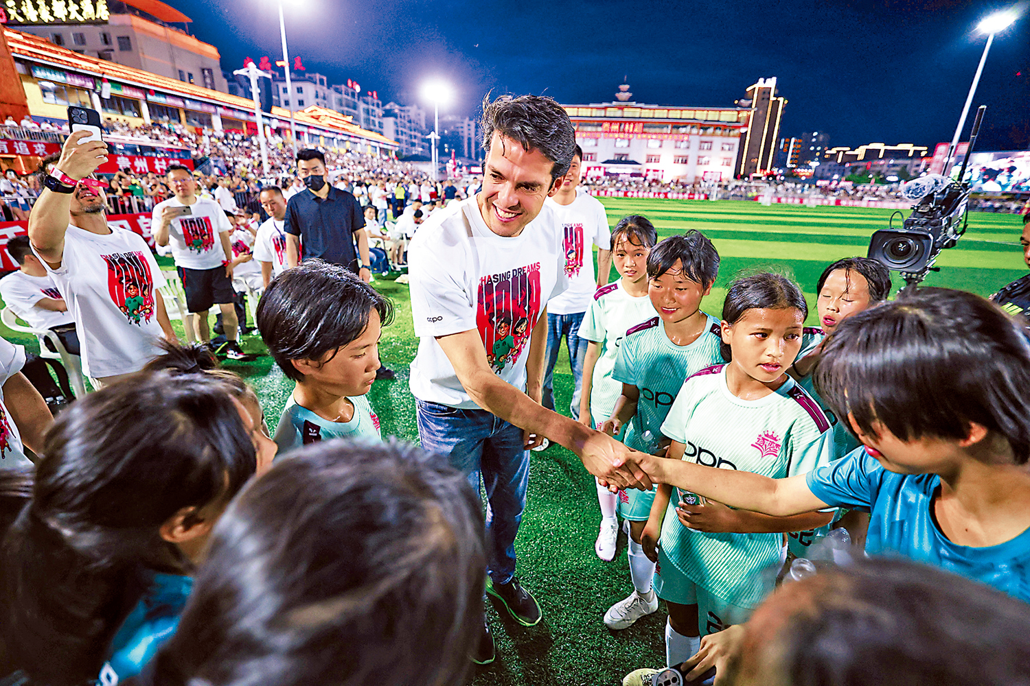 卡卡當晚還觀看了由榕江縣24名小學學生組隊打響的「逐夢」青少年女足公益賽。「我看到了她們在場上追逐足球、為了比賽不斷拚搏的勁頭。」卡卡說。