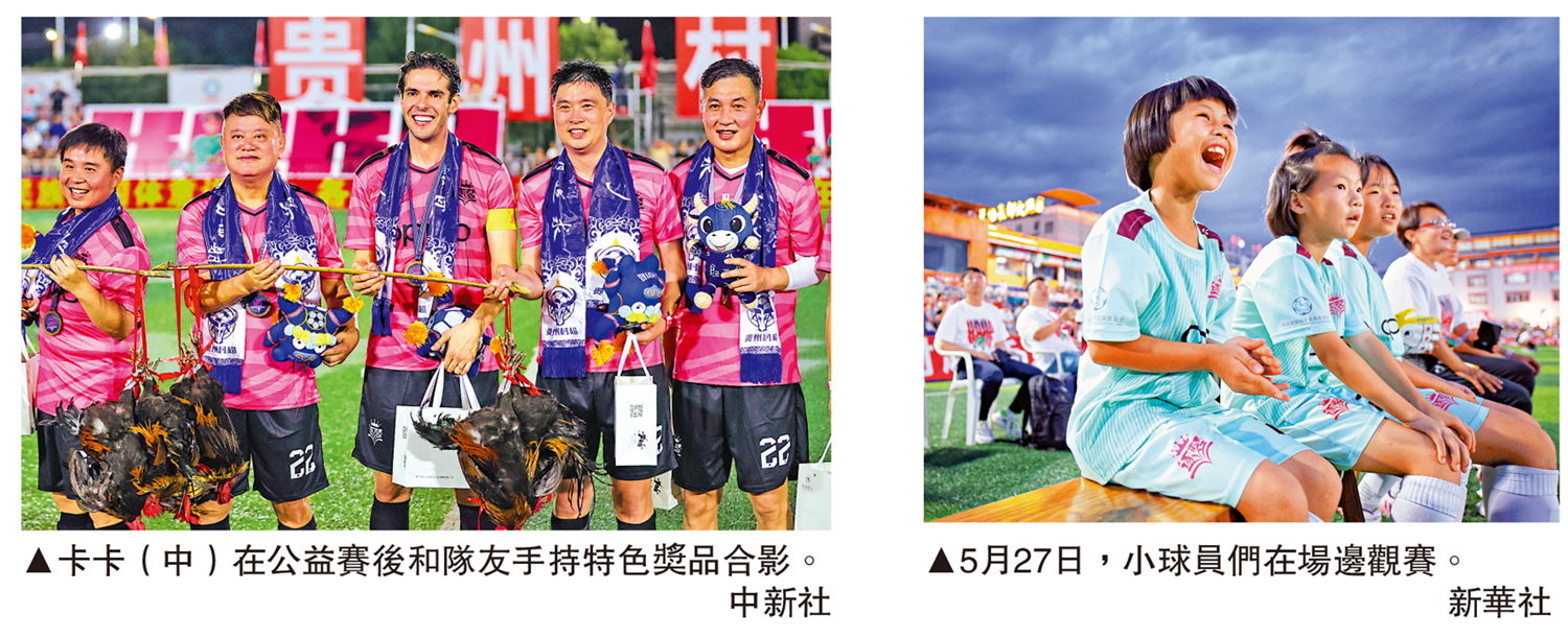 大公報據新華社報道:卡卡來了!繼奧雲與「村超」線上互動後,又一位傳奇球星來到了「村超」誕生地貴州榕江,除親身下場重現經典慶祝動作,更盛讚小球員的拚搏勁頭,直指「村超」場景跟巴西十分相像。卡卡的到來提升了「村超」的「段位」,而「村超」也打開了以卡卡為代表的外國友人了解中國的一扇窗。自去年5月13日,全稱為貴州榕江(三寶侗寨)和美鄉村足球超級聯賽的「村超」打響後,這一賽事便火爆「出圈」。進入2024年,「村超」更是新意滿滿,海外影響力不斷增強,在與英超牽手的基礎上,其模式還在非洲貝寧、南非等地被複製。一年多來,「村超」依然高光、魅力更甚。