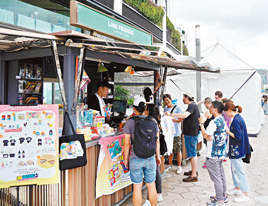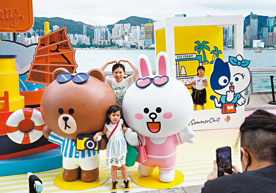 昨日下午,香港文匯報記者在星光大道觀察,端午節主題的LINE FRIENDS公仔十分吸睛,大人小孩都禁不住上前合影,這些卡通人物會在海濱長廊佇立至下月1日。嚐味當夏美食街商戶銷售情況亦理想,遊客沿尖沙咀海濱漫步,走走停停,不少人會隨手買一份美食,坐在長椅上嘆海景。其中一個飲品攤位,約半小時內已賣出近20杯。