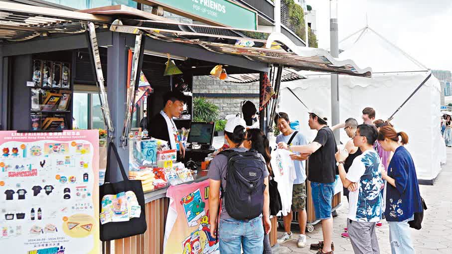 (香港文匯報 記者 唐文)觀看龍舟比賽和無人機表演,自然少不了美食相伴,香港旅遊發展局自上周六(8日)至下周日(16日),在星光大道舉辦嚐味當夏美食街,設有10個各具特色的攤檔,銷售鹹肉糉、奶茶、雪糕、手工啤酒等本地美食,附近更有各種造型的LINE FRIENDS卡通人物,為維多利亞港增添亮色。昨日下午星光大道人頭湧湧,不少旅客打卡影相之餘,隨手購買一杯冷飲、一份小食,閒坐在海濱觀看海景,等候晚上的無人機表演。有攤檔負責人表示,昨日是開檔以來銷情最好的一天,希望特區政府舉辦更多大型活動,帶旺餐飲零售生意。