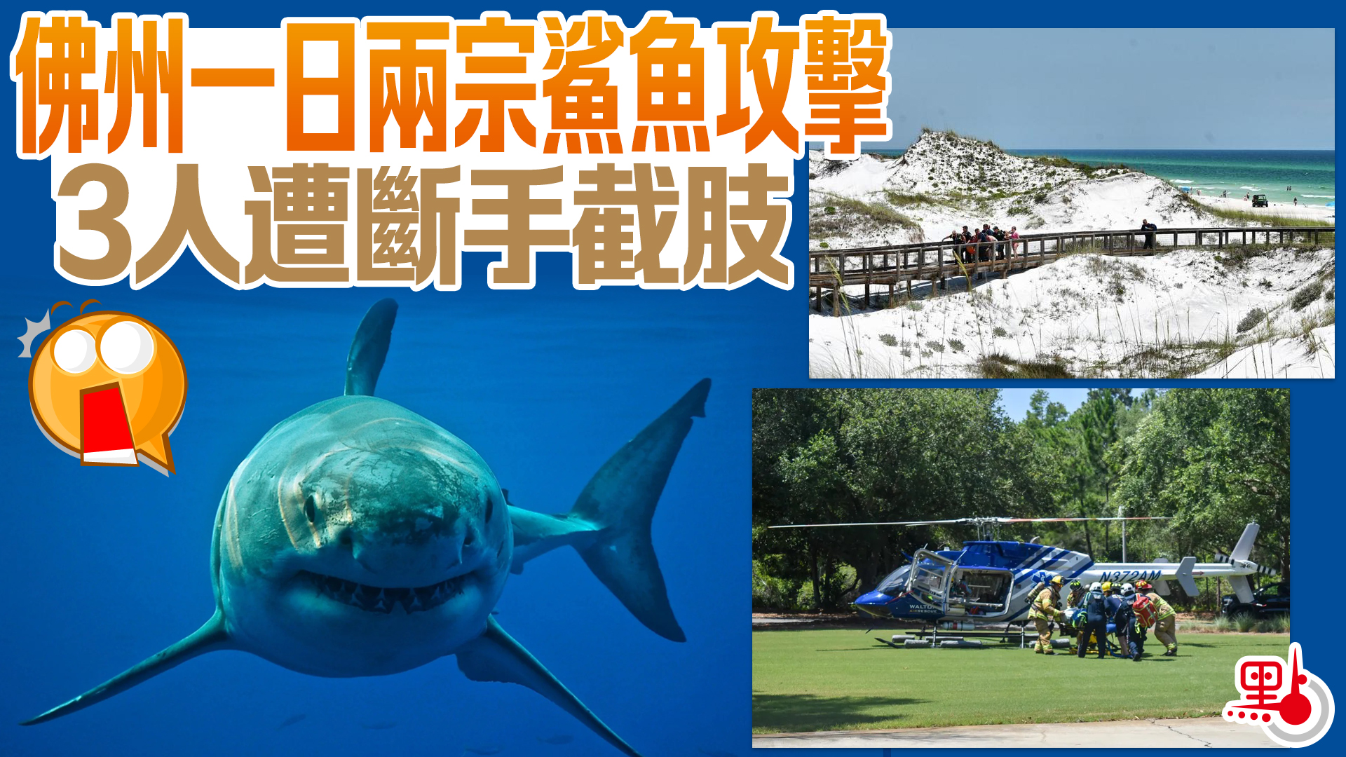 大公文匯全媒體報道,美國佛羅里達州竟一天之內發生兩宗鯊魚攻擊事件,導致一名45歲女子左臂遭咬斷,還有兩位少女受傷,其中一位少女失去左手與部分右腿。當局在事發後緊急關閉海灘,並派員進行巡邏,直到隔天才重新開放。