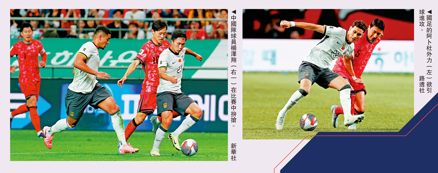 (大公報 記者 梁潤森)世界盃外圍賽亞洲區第2圈最後一輪賽事周二開打,中國國家男子足球隊作客硬撼已經出線的韓國。國足擺下「長城陣」希望保住和局取得出線權,半場他們守得不錯順利以0:0結束。下半場,國足被韓國的李康仁攻破,更以0:1輸掉賽事。稍後時間舉行的泰國主場對新加坡,泰國在半場領先1球的情況下,下半場新加坡一度追平,不過泰國連入兩球贏3:1,國足幸仍有驚無險地得以殺入18強賽。