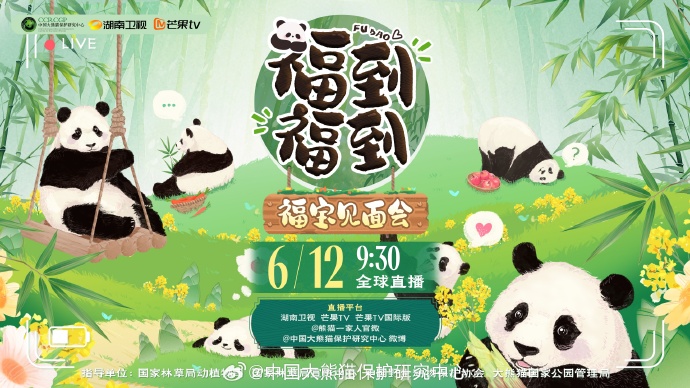 想睇「福寶」見面會,可以鎖定熊貓中心官微和湖南衛視、芒果TV,觀看全球直播《福到!福到!「福寶」見面會》。