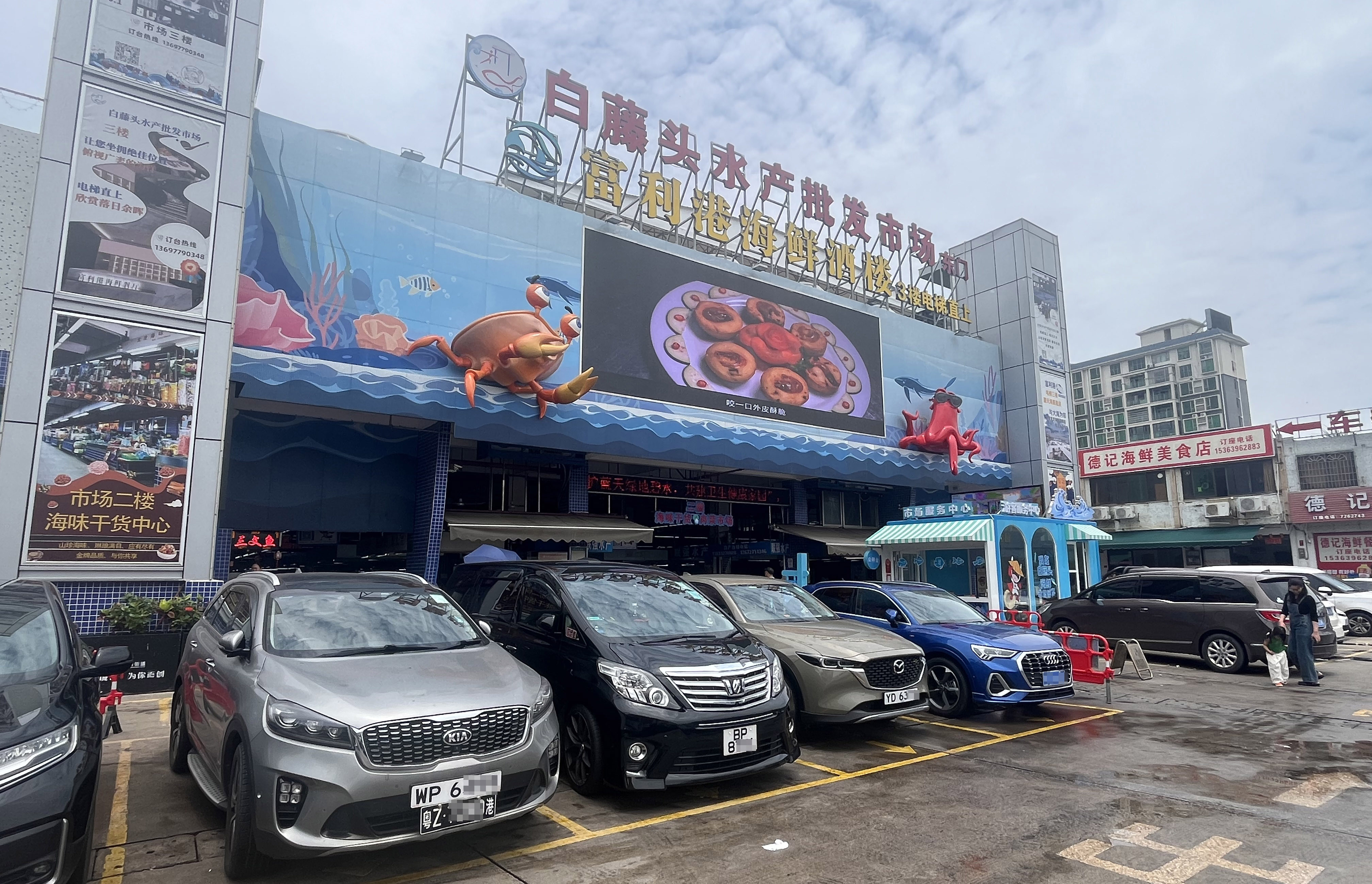 港澳車「北上」正成為節假日常態,珠海斗門區白藤街道亦成了港澳居民北上消費目的地之一。每逢周末假期,白藤頭水產批發市場周邊便湧現眾多港澳車輛。記者近期在該市場門外停車場附近看到,一排排懸掛港澳車牌的車輛停泊,海鮮市場裏面十分熱鬧,市場外面還有近一公里車龍排隊等候進入。