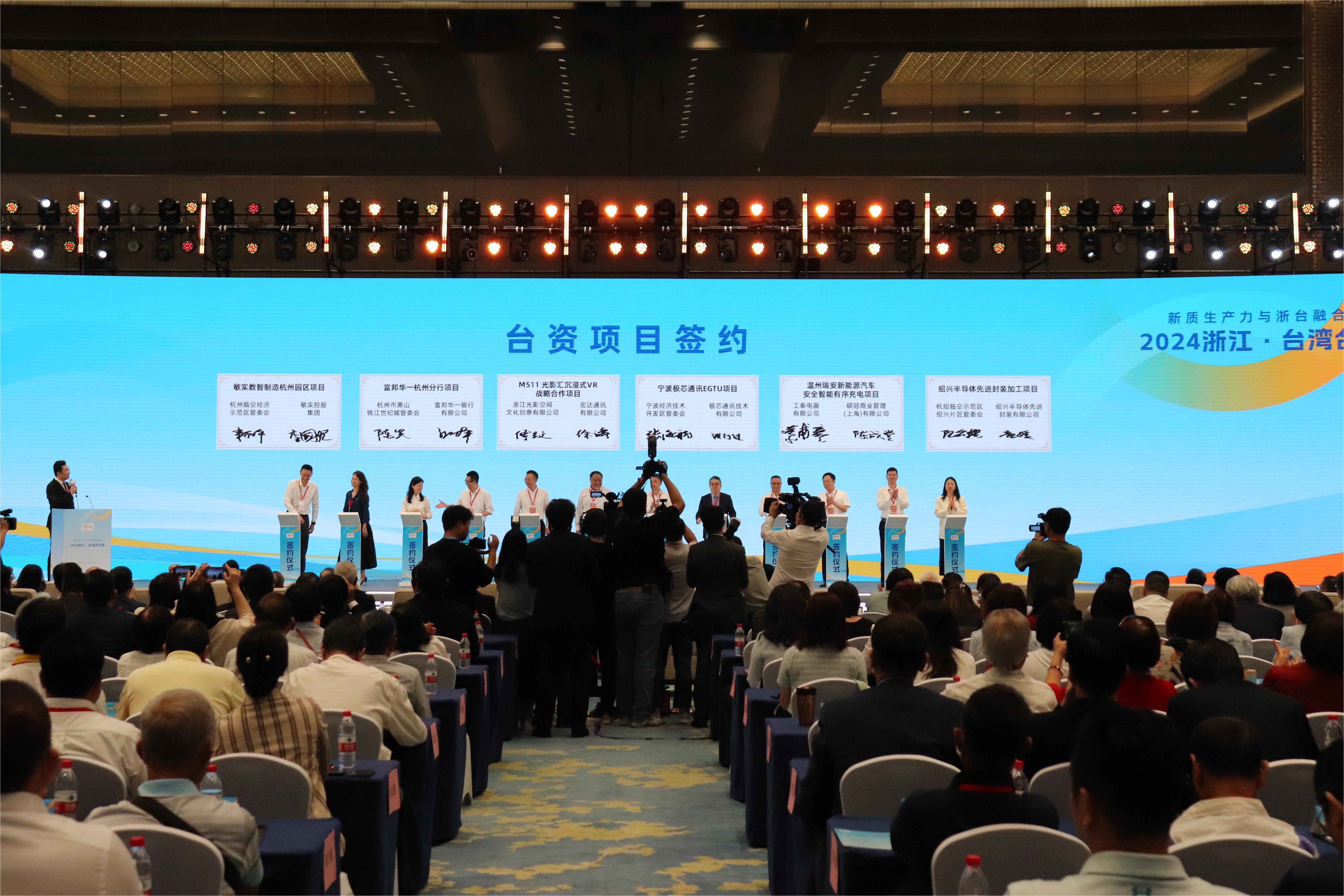(大公文匯網 記者王莉、實習記者郭興超 杭州報道)近日,由浙江省政府與國務院台辦共同主辦,以「新質生產力與浙台融合發展」為主題的「2024浙江·台灣合作周」在杭州啟幕。開幕式當天,12個台資項目進行現場簽約。