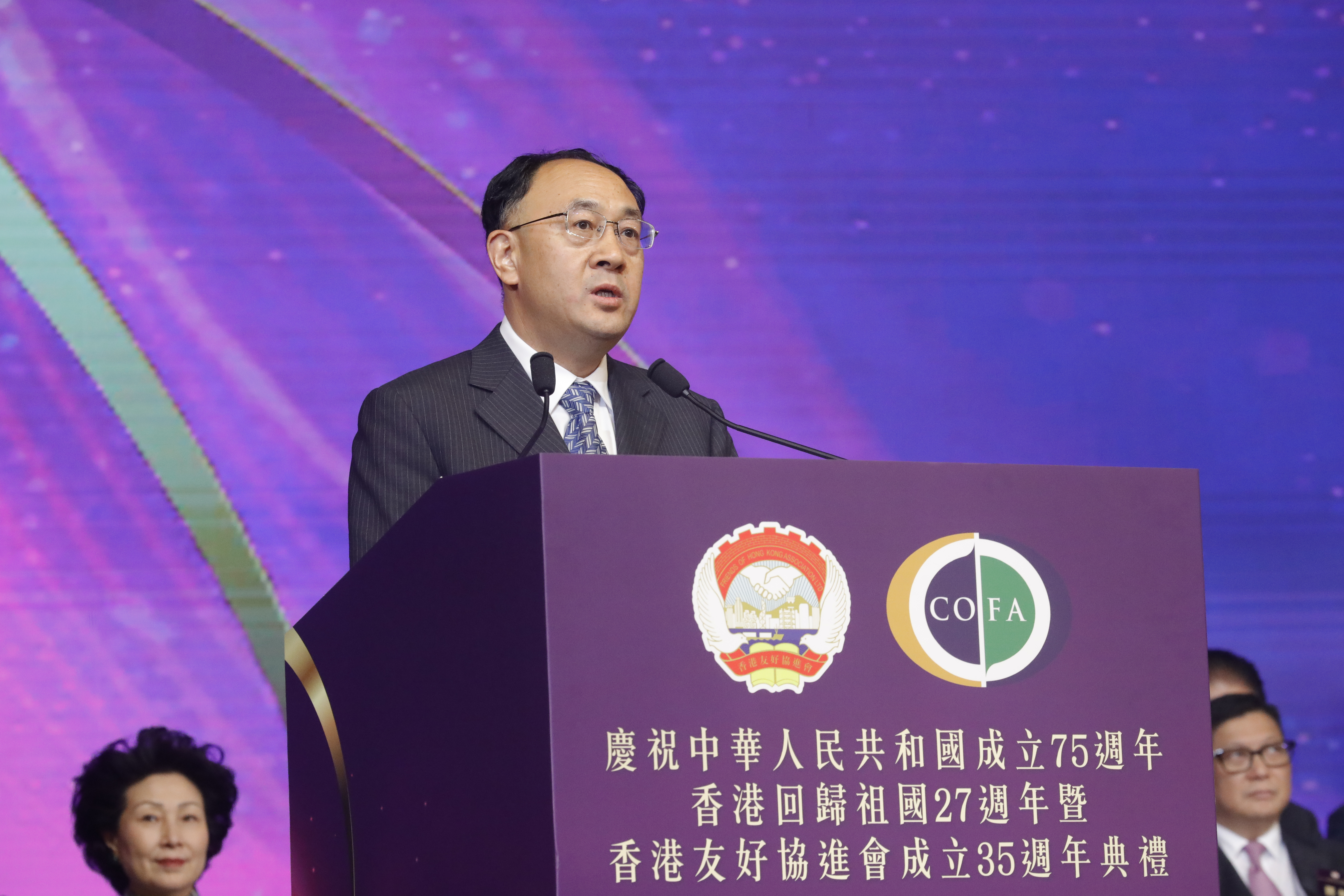 (大公文匯全媒體 記者 鄭洢林)「慶祝中華人民共和國成立75周年、香港回歸祖國27周年暨香港友好協進會成立35周年典禮」今晚(13日)在灣仔會展中心隆重舉行。各界嘉賓歡聚一堂,氣氛熱烈、歡聲笑語。