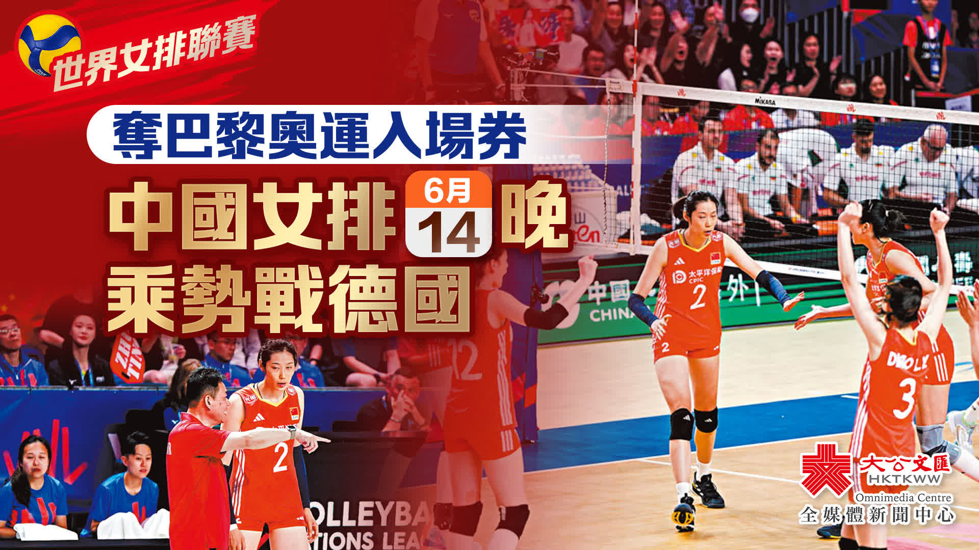 (香港文匯報記者 葉詩敏)中國女排今晚續出戰2024世界女排聯賽香港站,賽前迎來好消息,隨着荷蘭隊昨日在福岡站以0:3不敵美國隊痛失世界排名積分,中國女排確定直接晉身巴黎奧運。她們將在今晚乘勢惡鬥德國隊,力爭兩連勝。
