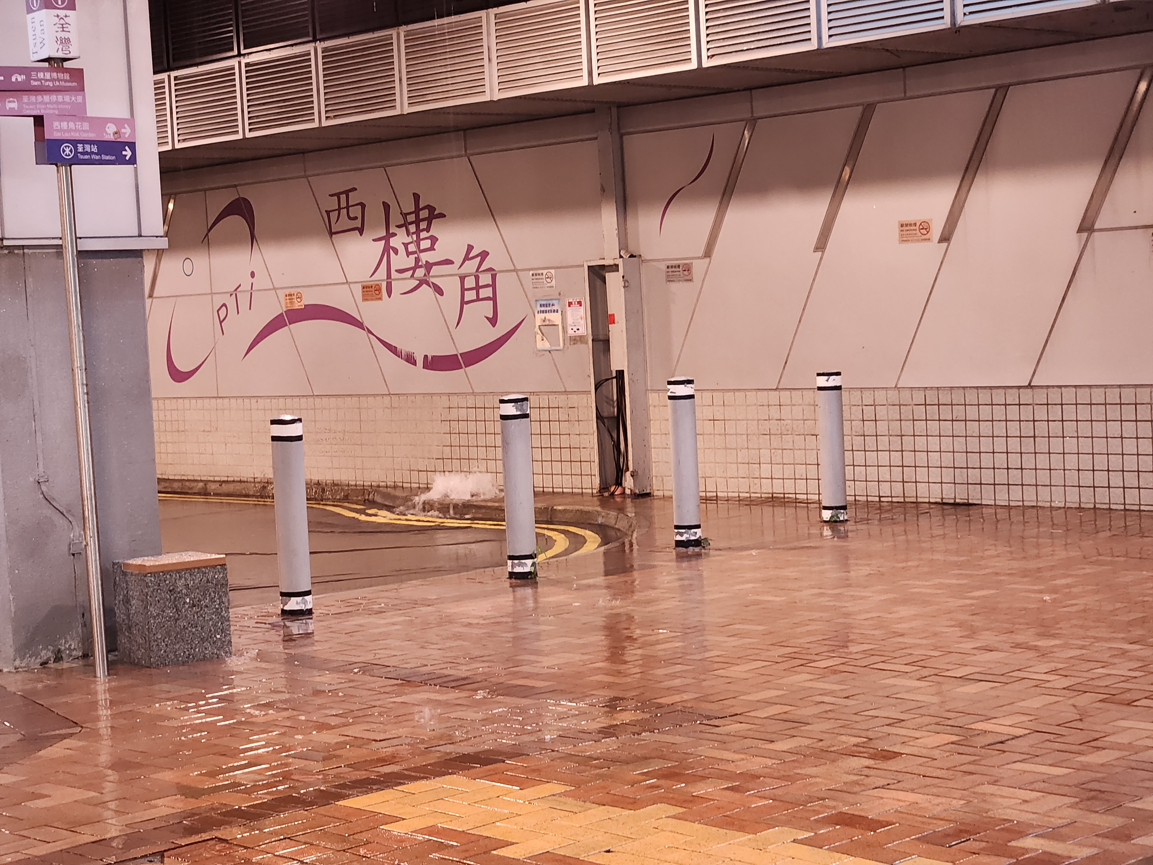 另外,有讀者表示,港鐵荃灣西站周邊發生雨水倒灌,在荃灣西樓角路公共運輸交匯處,可見大量雨水從地面水渠內噴湧出來,對過路市民通行造成一定影響。