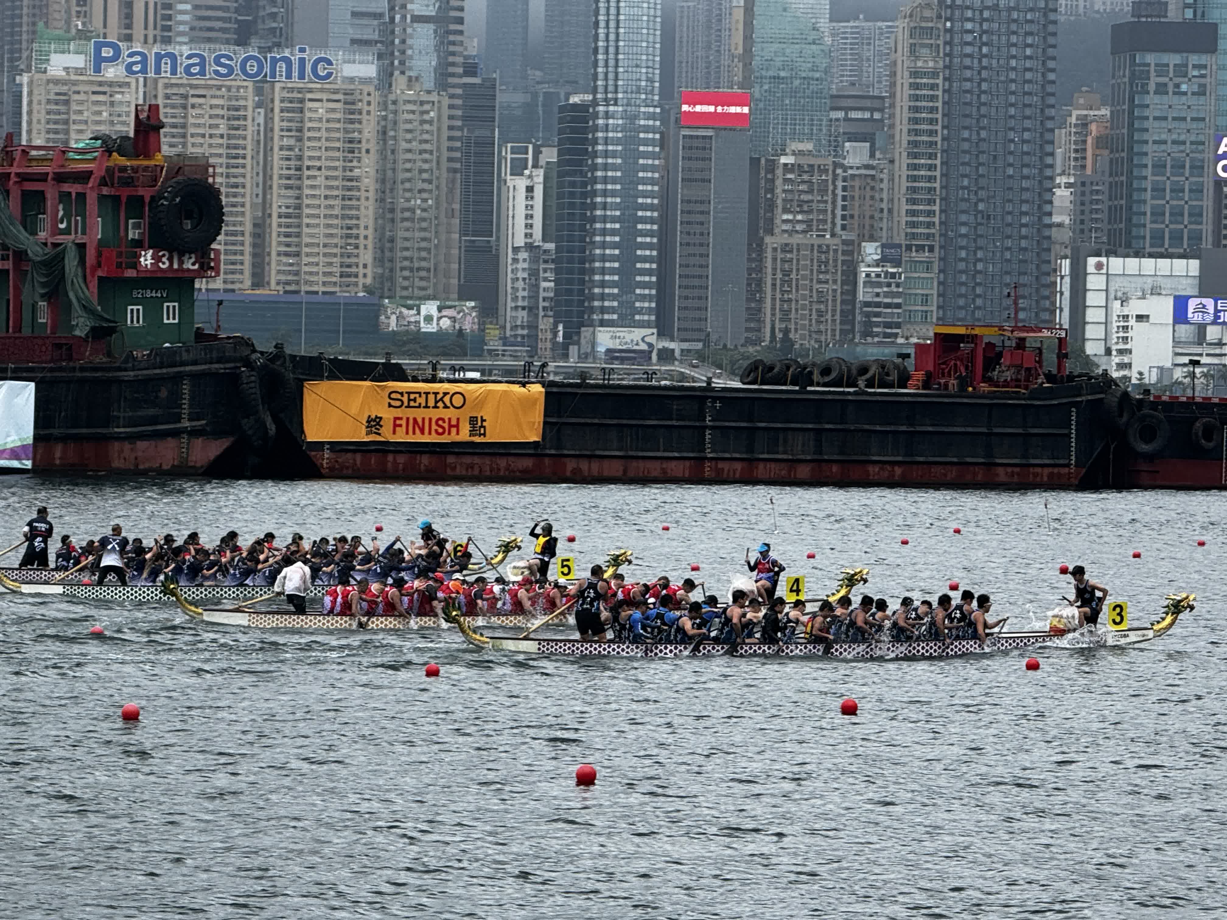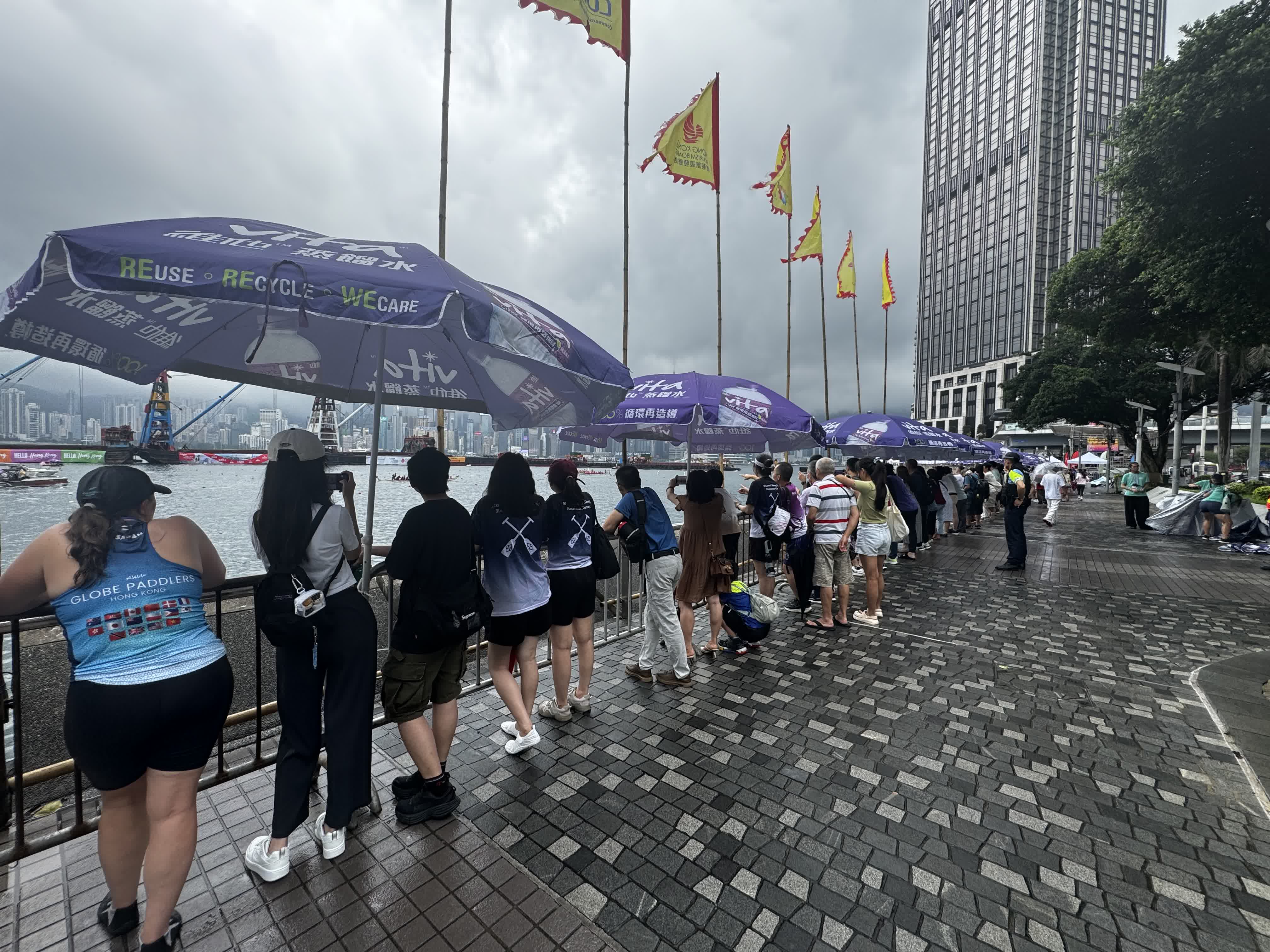 雖然今日屢落大雨,但觀眾席一早就「霸滿靚座」。更多的市民則是站在岸邊的雨棚下,冒雨觀賞,不時熱烈討論,可見香港龍舟文化之深入民心。