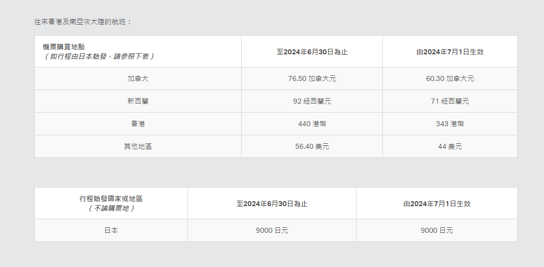 關鍵詞:機場長途航班國泰航空燃油附加費