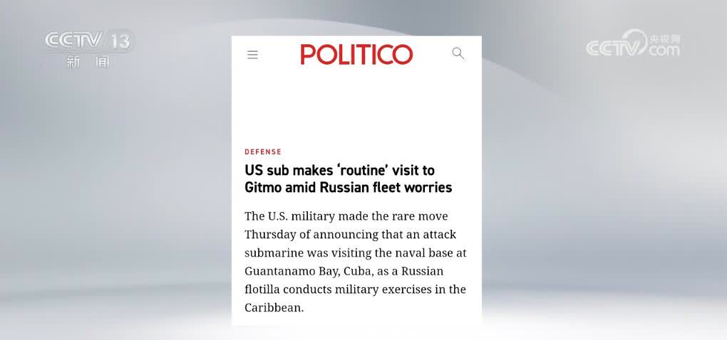 美聯社13日報道稱,在俄海軍艦艇編隊抵達加勒比海並將舉行演習的時刻,美國海軍潛艇抵達古巴的行動是「展示武力」的舉動。美國《政治報》13日的報道也將美國軍方此舉稱為「罕見的」行動。